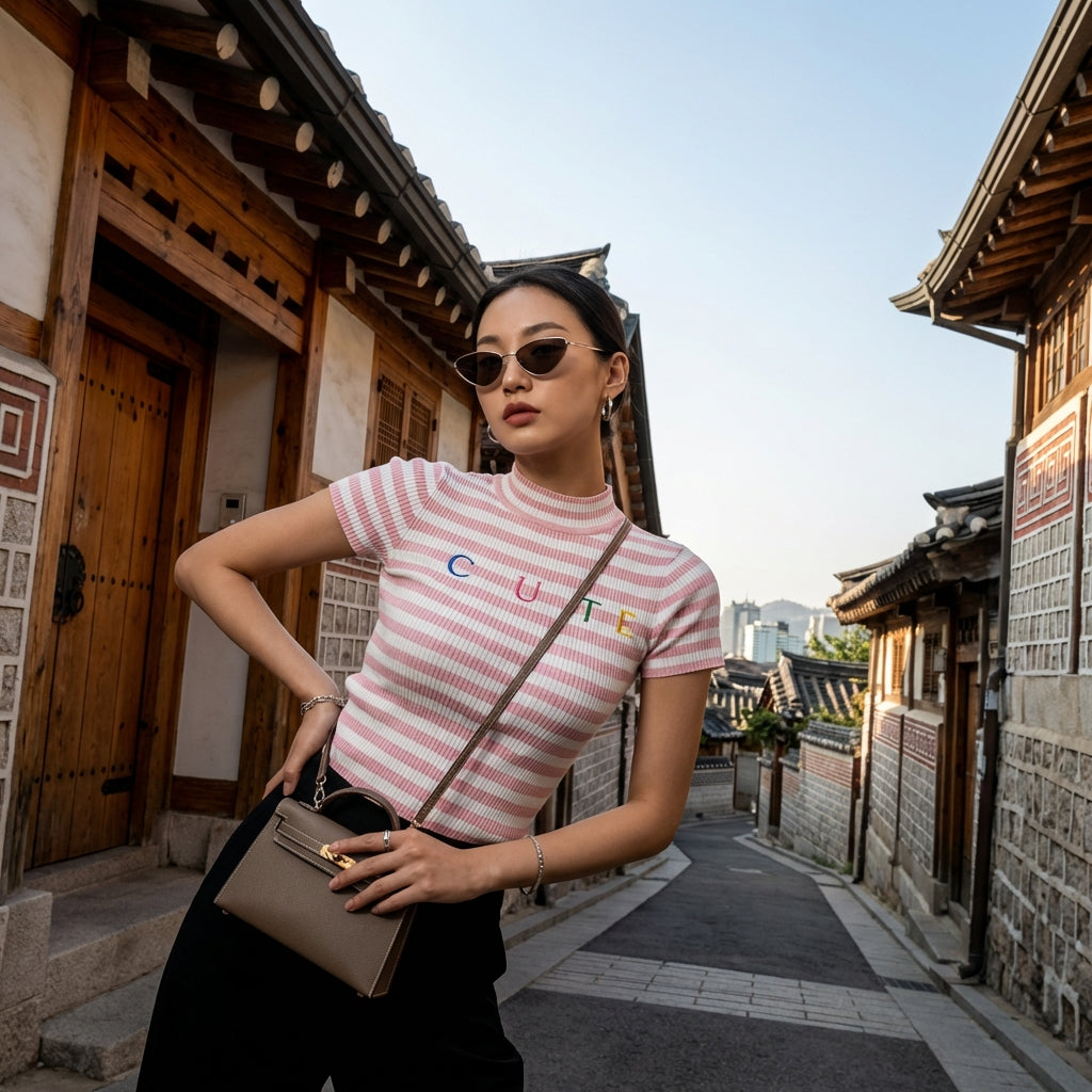 - Estilo: K-fashion, Streetwear, Tendencia. Esta camiseta encarna la moda urbana coreana, perfecta para un look casual pero con estilo.