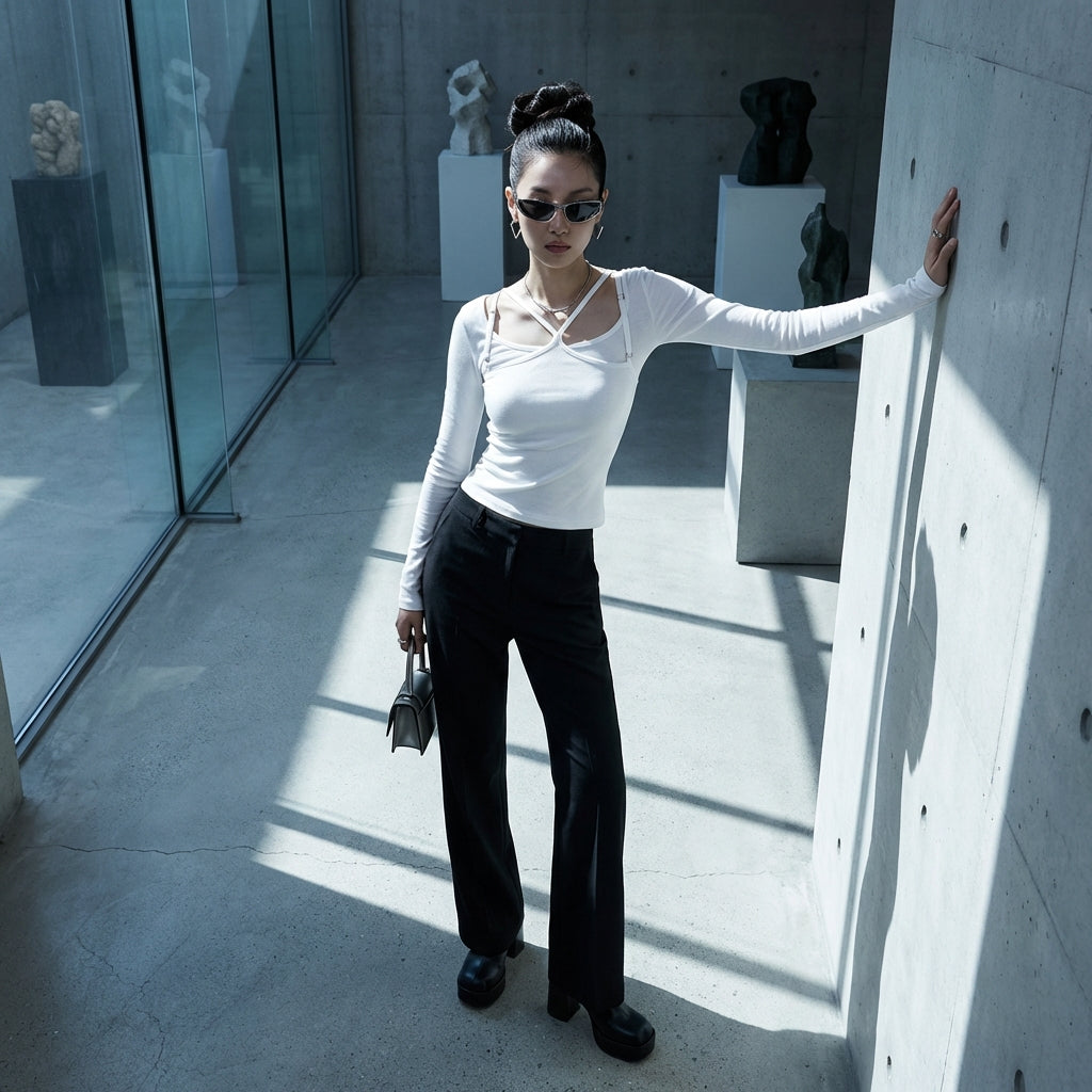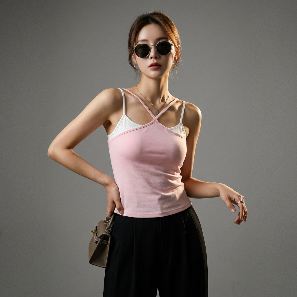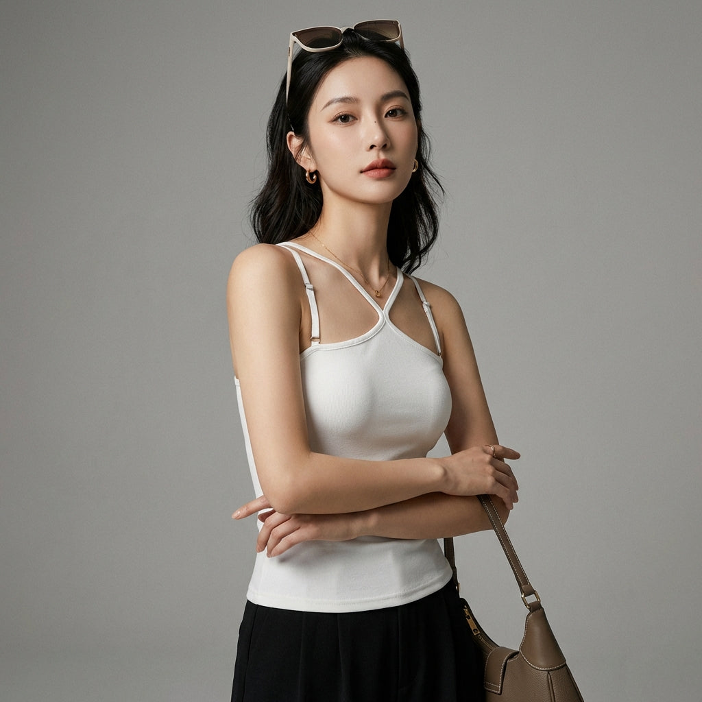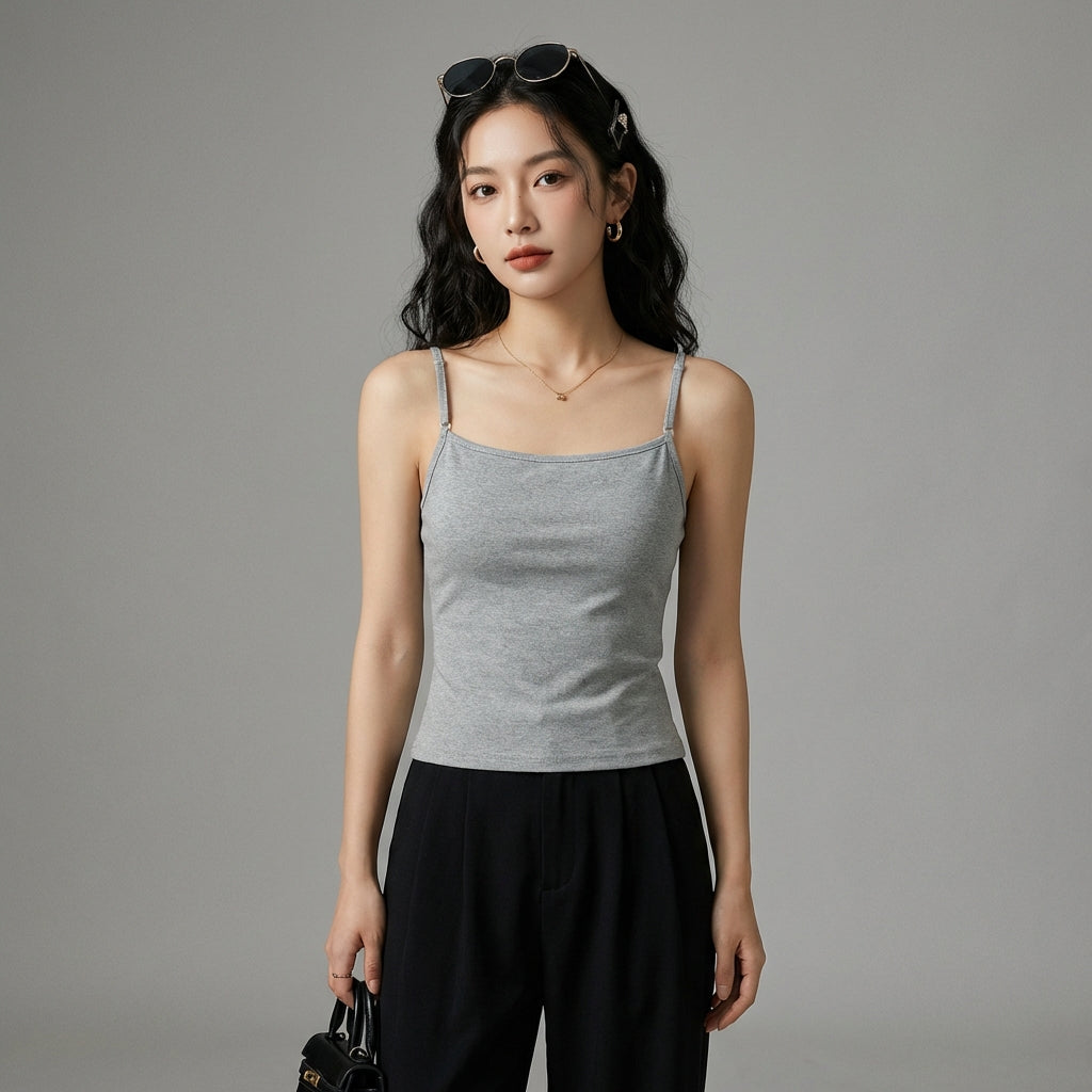 - Estilo: Minimalista, Urbano, K-fashion. Esta camiseta sin mangas encarna la elegancia de la moda coreana con su simplicidad refinada, perfecta para un look casual o sofisticado.