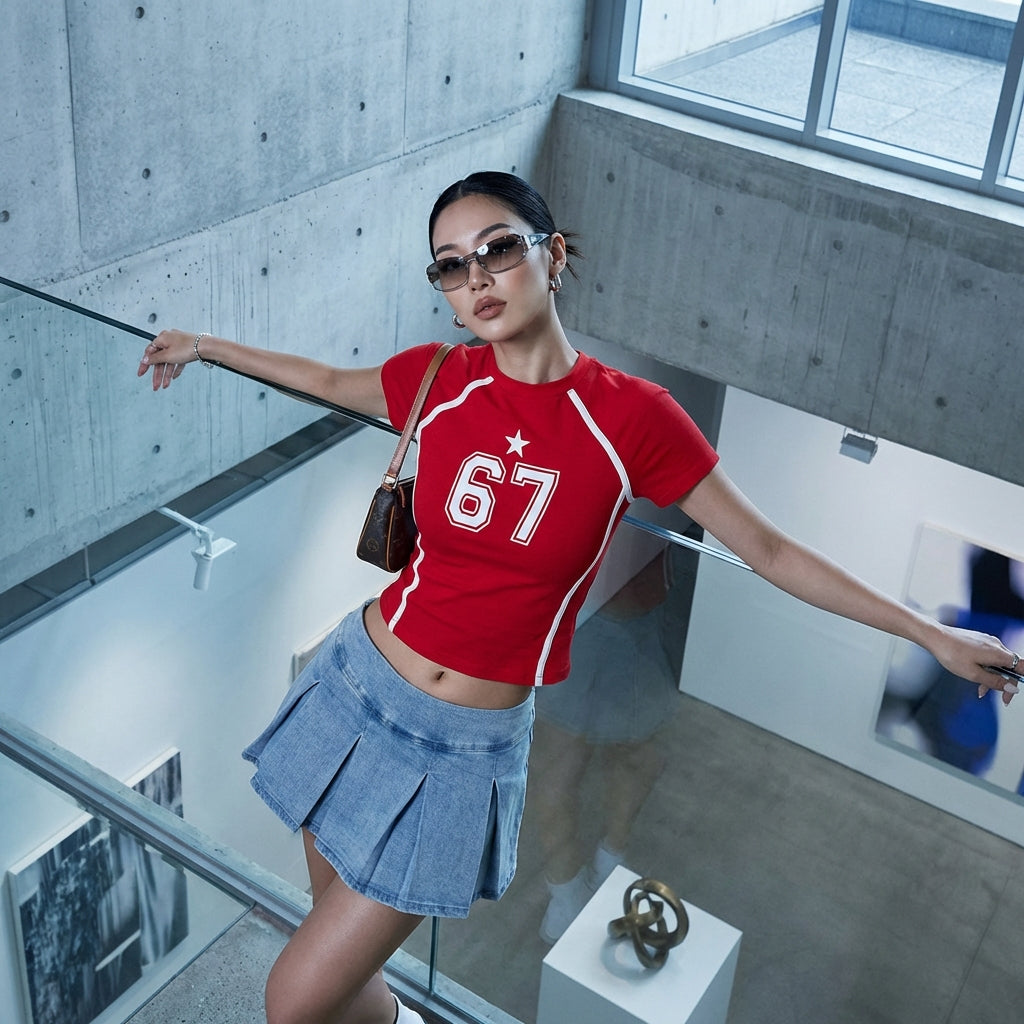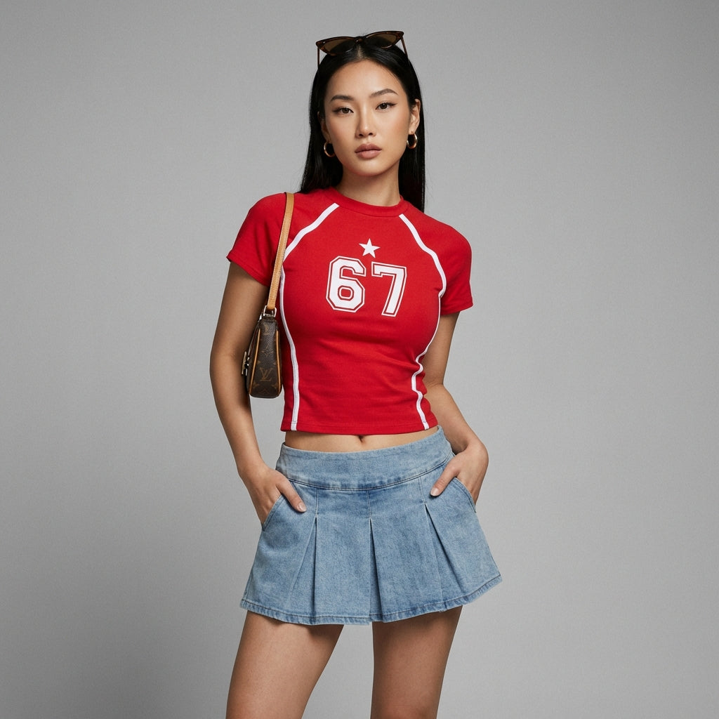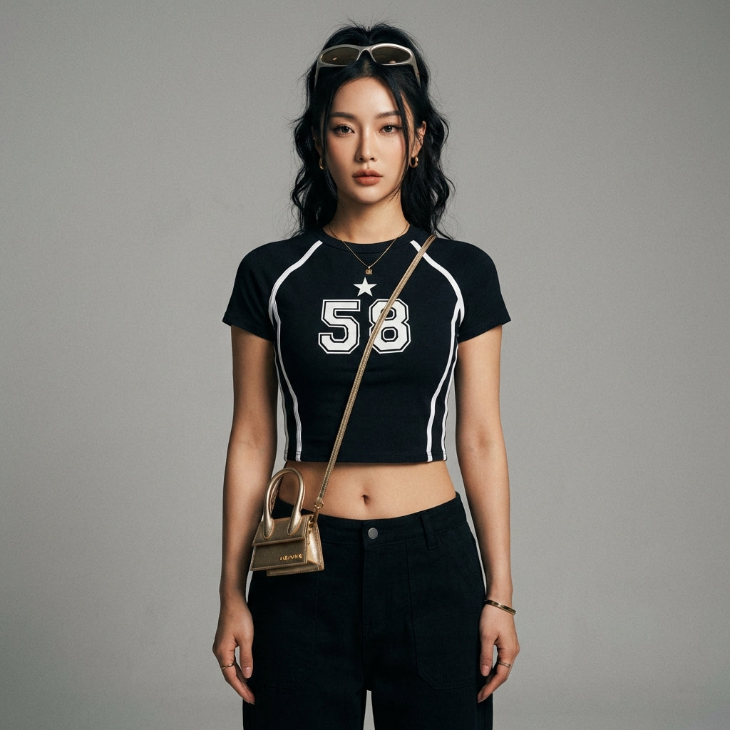 - Estilo: Streetwear, K-fashion, Tendencia. Este crop top encarna el dinamismo de la moda urbana coreana, ideal para un look casual y con estilo.