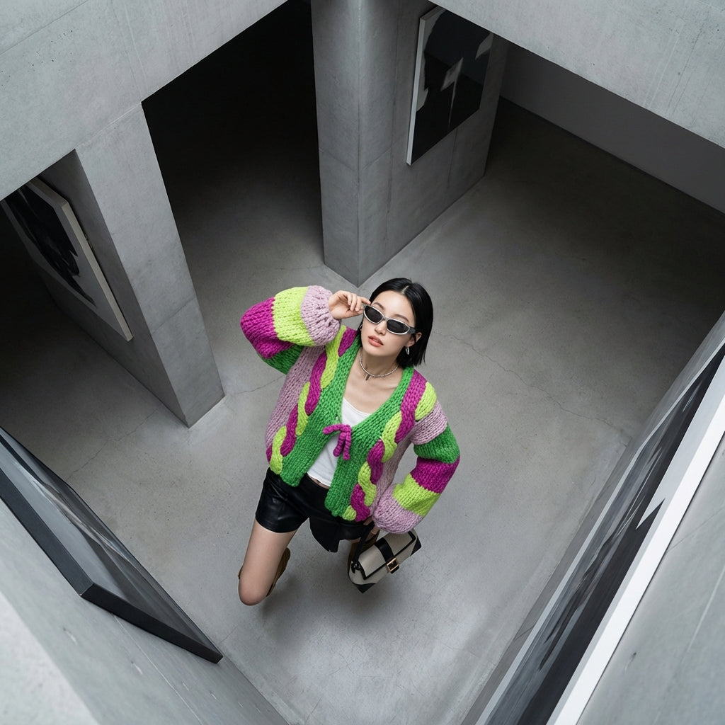 Este cárdigan es la prenda ideal para superponer y añadir un toque de color y suavidad a tus atuendos, manteniéndote a la vanguardia de la moda coreana.
