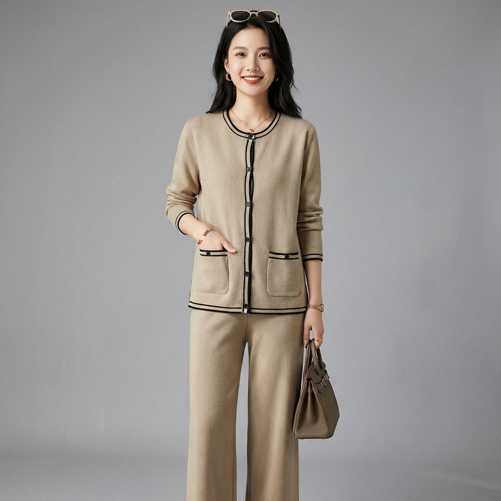 - Tipo: Conjunto de dos piezas, Cárdigan, Pantalón recto. Un atuendo completo y armonioso, fácil de llevar y de complementar.
