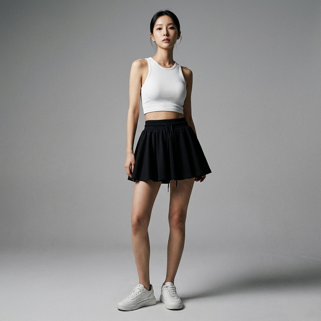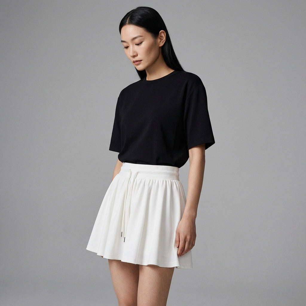 - Estilo: Moda coreana, Sporty Chic, Tendencia. Esta falda encarna el espíritu dinámico de la moda coreana, mezclando elegancia y funcionalidad para un look moderno.
