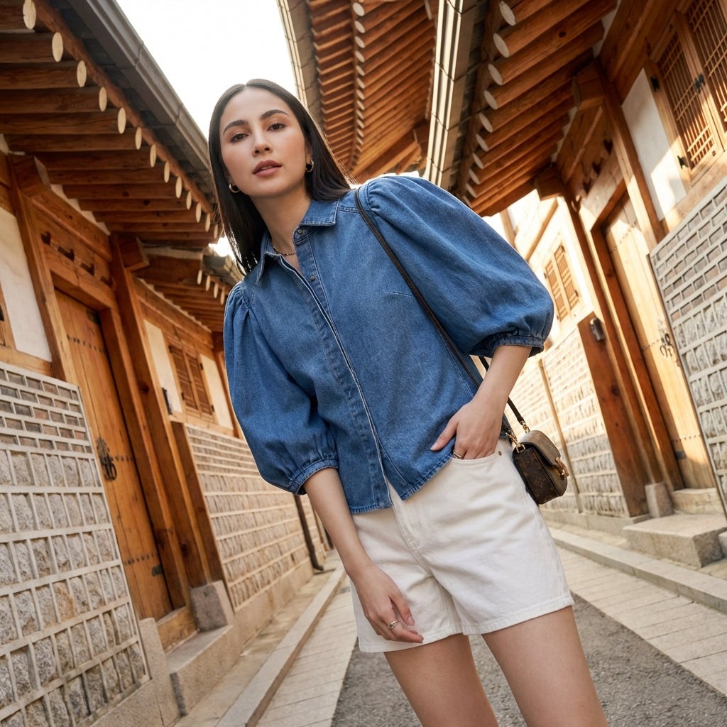 Esta camisa es un imprescindible para aquellas que buscan un estilo a la vez moderno y fácil de llevar, reflejando la esencia de la moda coreana.