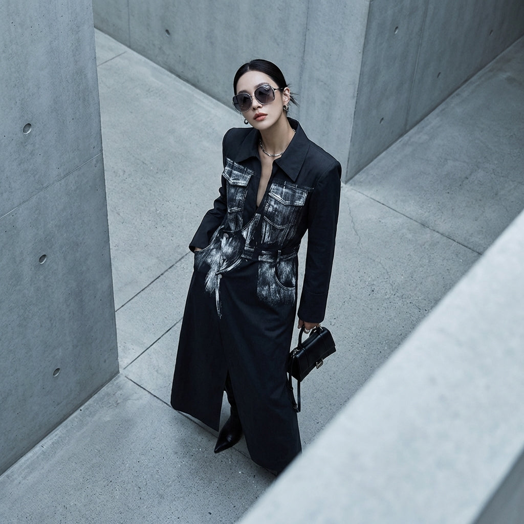 Afirma tu estilo con nuestra gabardina larga estampada, una pieza maestra inspirada en la moda coreana. ¡Su cuello sastre y su corte elegante la convierten en la elección ideal para un look sofisticado y a la moda en cualquier estación! ✨