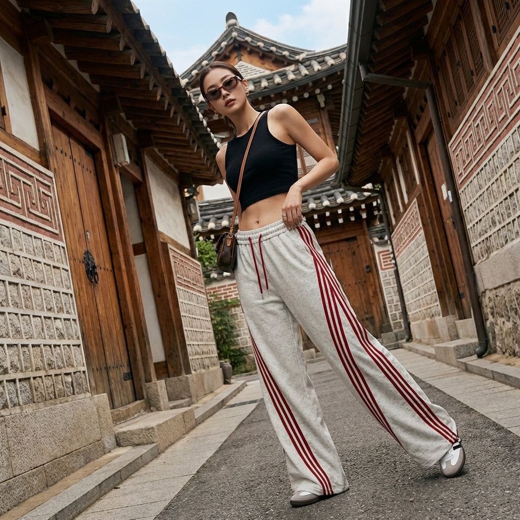 - Estilo: Streetwear coreano, Retro, Casual. Estos pantalones encarnan la estética relajada y moderna de la moda urbana coreana, con un toque retro.