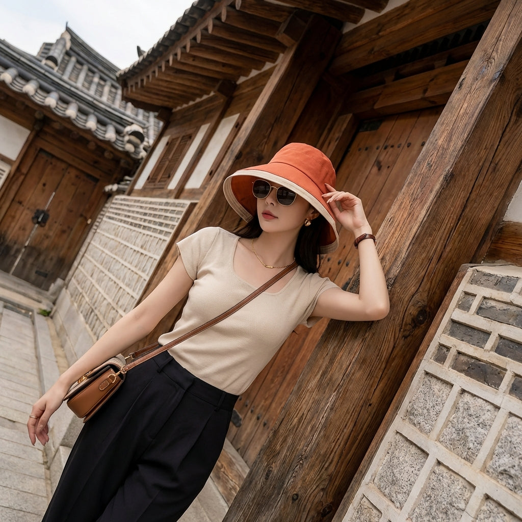 - Estilo: Moda coreana, Tendencia, Streetwear. Este sombrero de pescador se inscribe perfectamente en las tendencias actuales de la K-fashion, ofreciendo un look a la vez desenfadado y sofisticado.