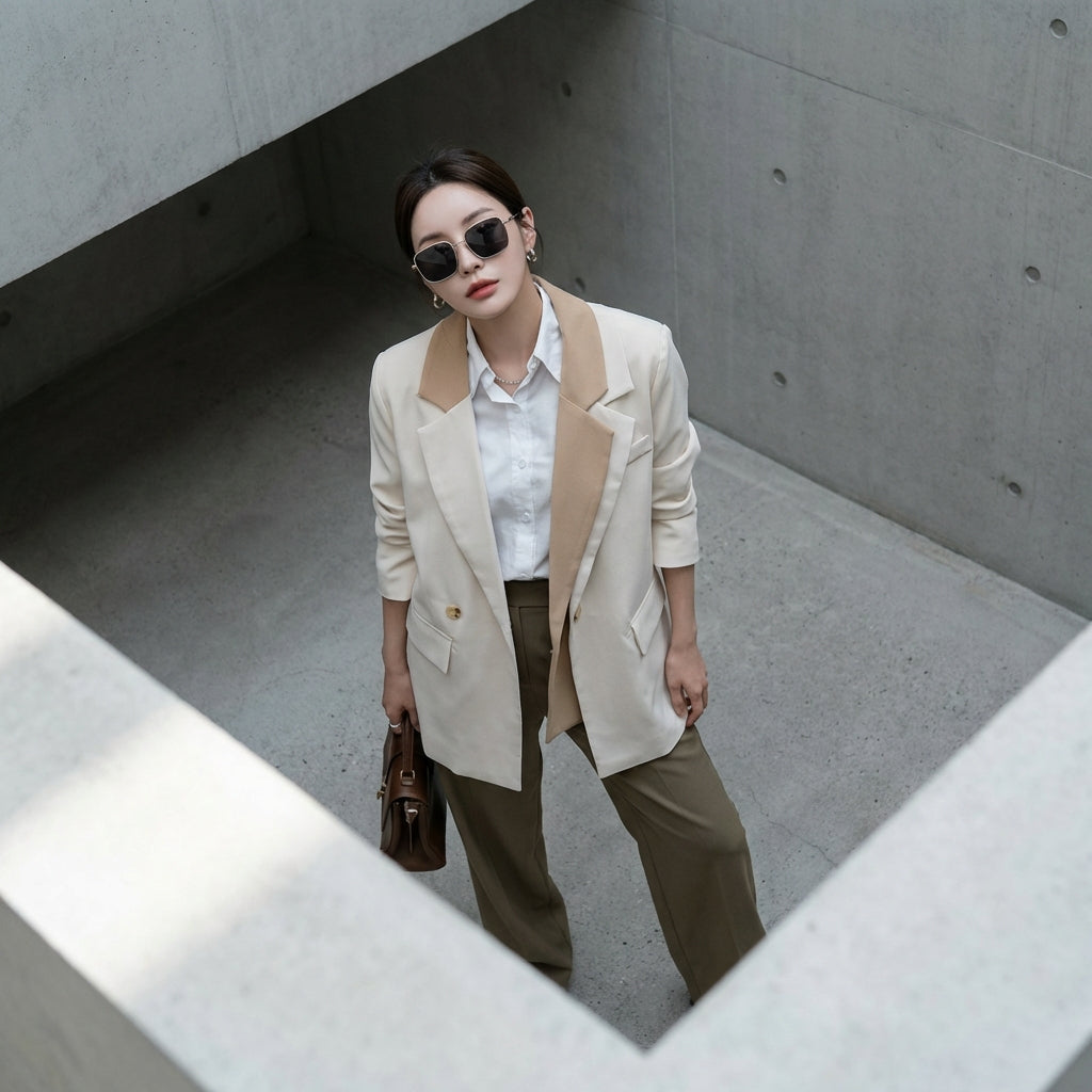 - Estilo: Moda coreana, Streetwear, Elegante, Minimalista. Este blazer encarna la estética depurada y chic de la moda coreana, ideal para un estilo urbano o profesional.