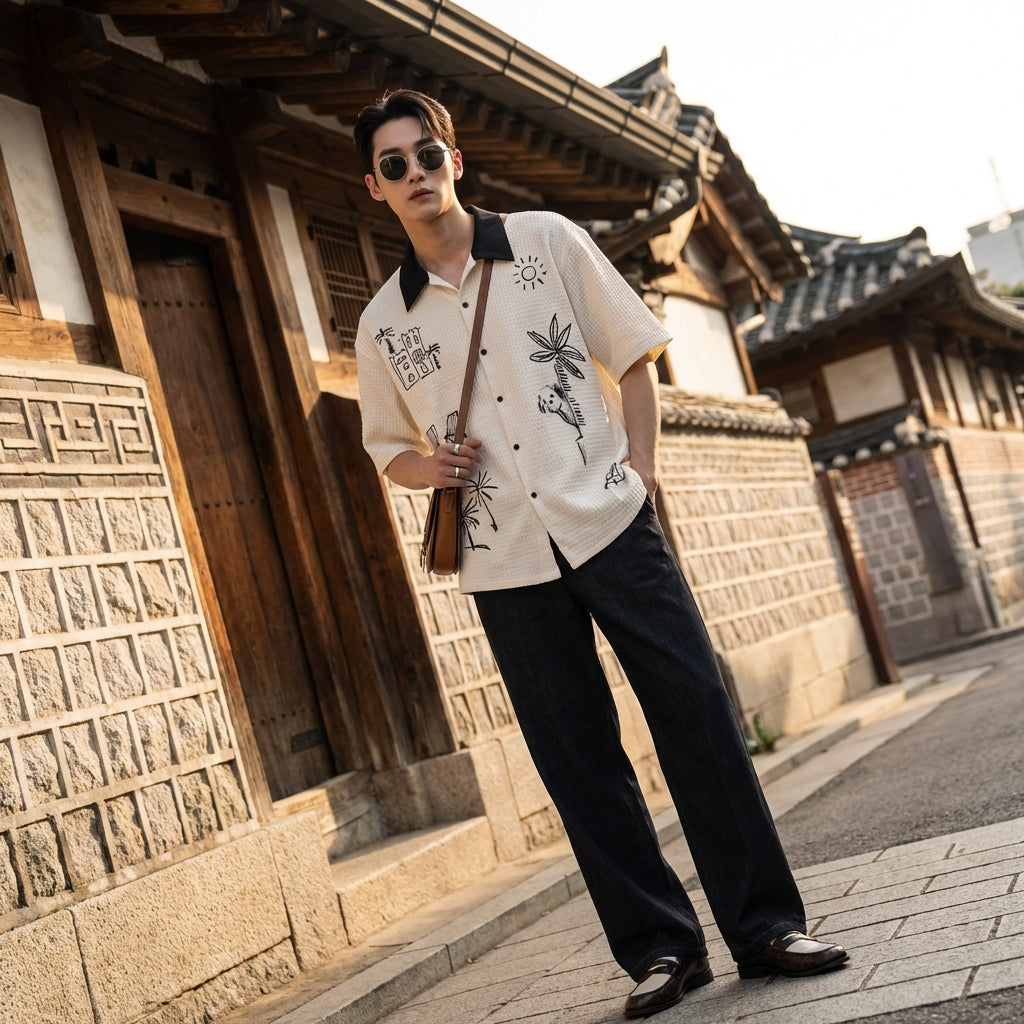 - Estilo: Moda coreana, Streetwear, Casual, Tendencia. Esta camisa encarna el espíritu de la moda urbana coreana con un toque de originalidad.