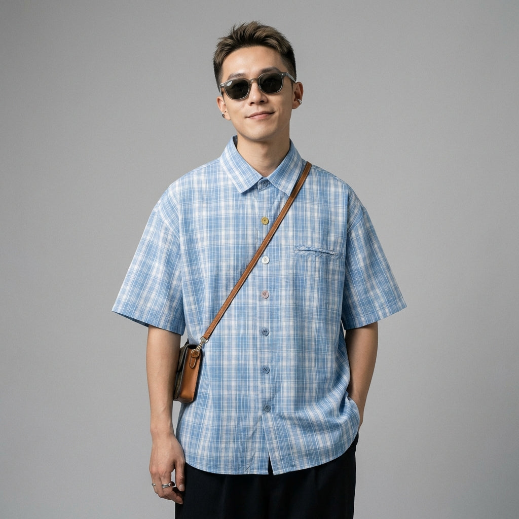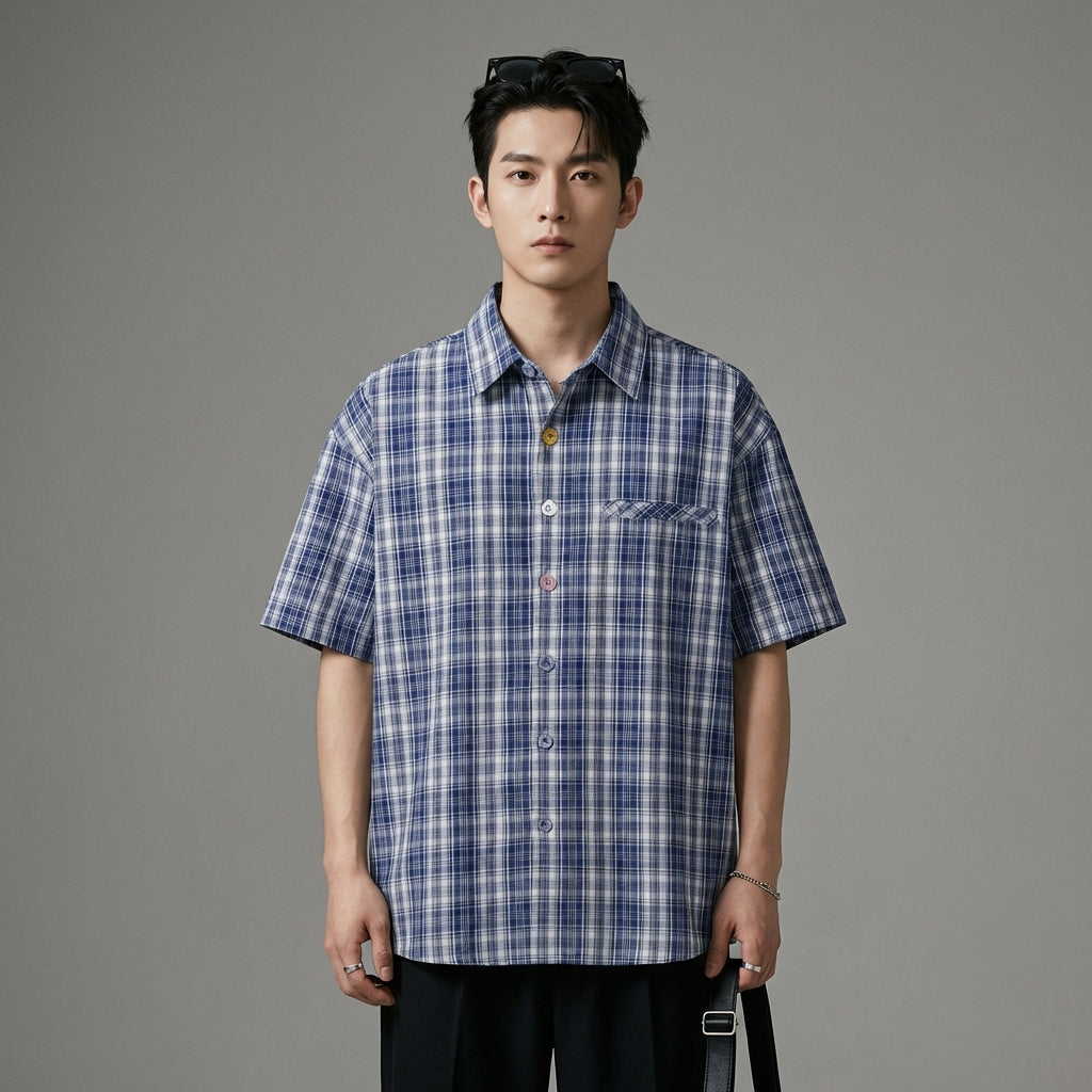 Adopta un look casual y moderno con nuestra camisa de cuadros oversize, perfecta para un estilo streetwear atrevido. ¡Su cuello clásico y sus mangas cortas la convierten en un imprescindible para los días soleados! ☀️