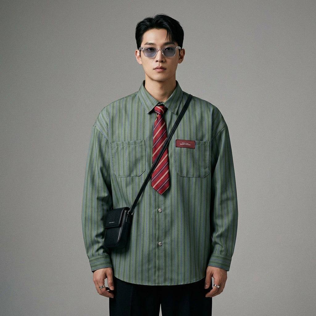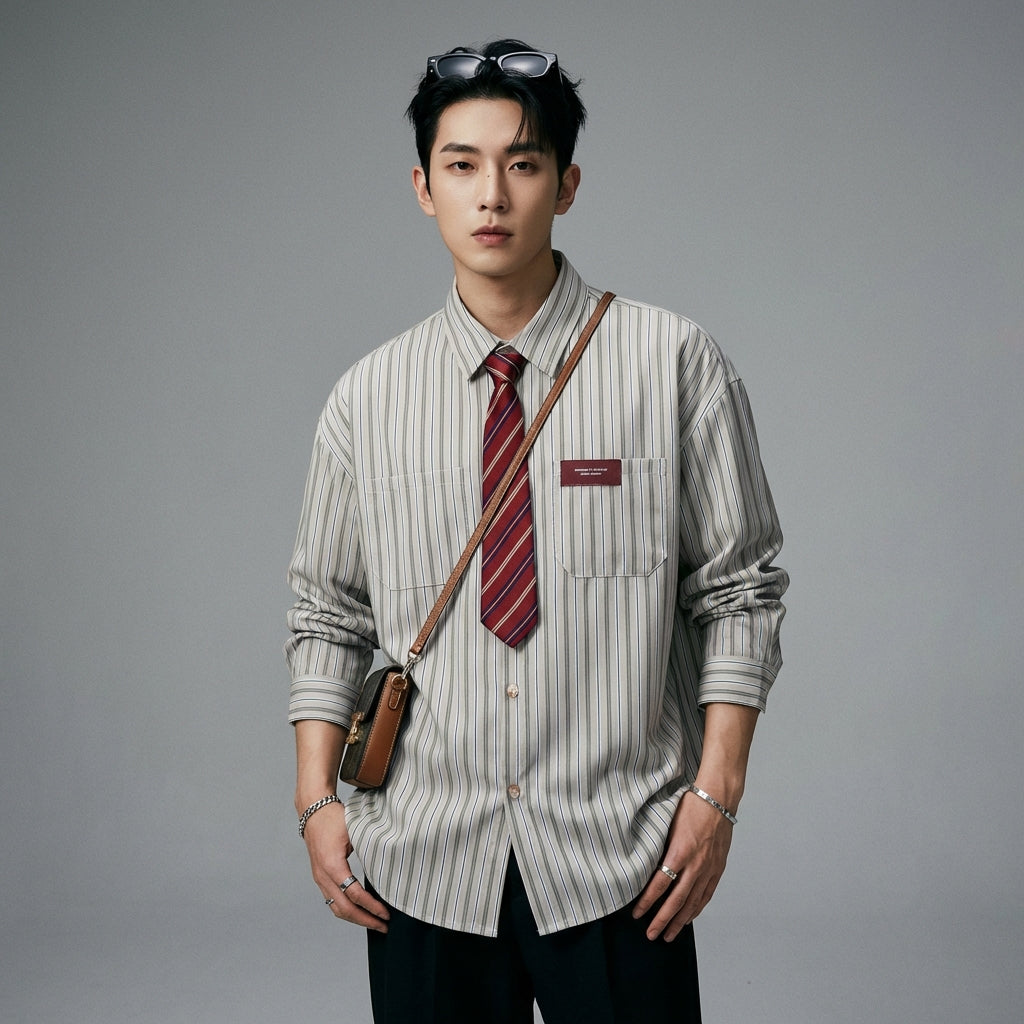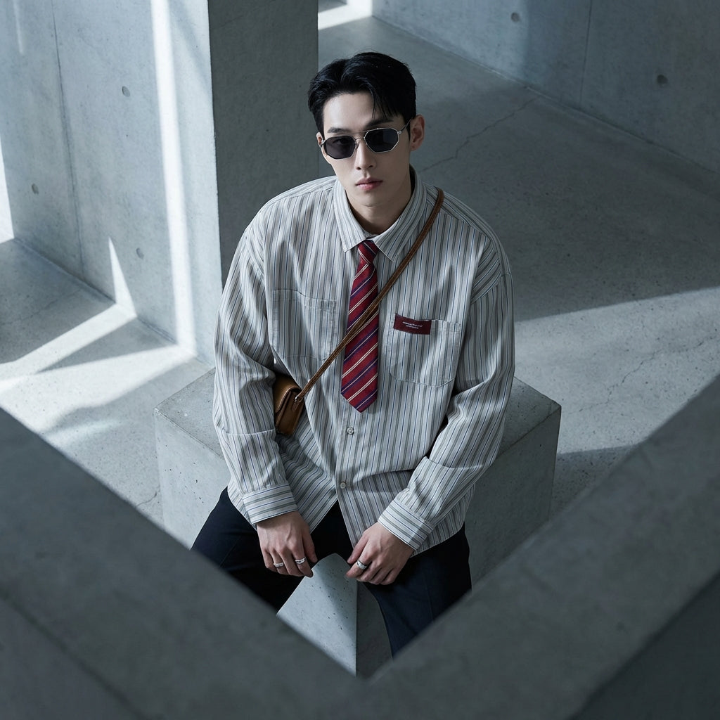 - Estilo: Streetwear, Tendencia, K-fashion. Esta camisa encarna el estilo urbano contemporáneo, con un toque de elegancia casual inspirada en la moda coreana.