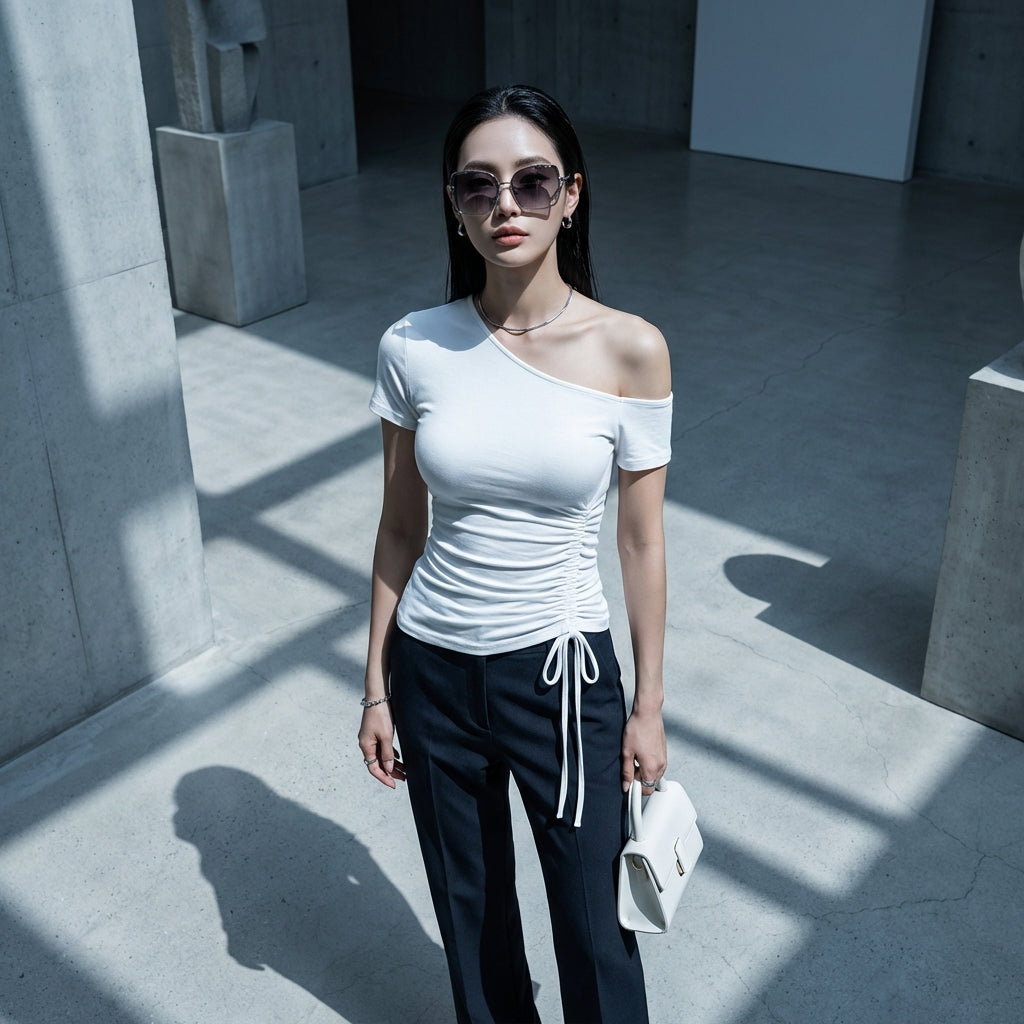 Afirma tu estilo con nuestra camiseta corta con hombros descubiertos, perfecta para los días soleados. Su corte ajustado y sus detalles plisados añaden un toque de audacia a tu armario de verano, ¡ideal para un look casual y a la moda! ☀️