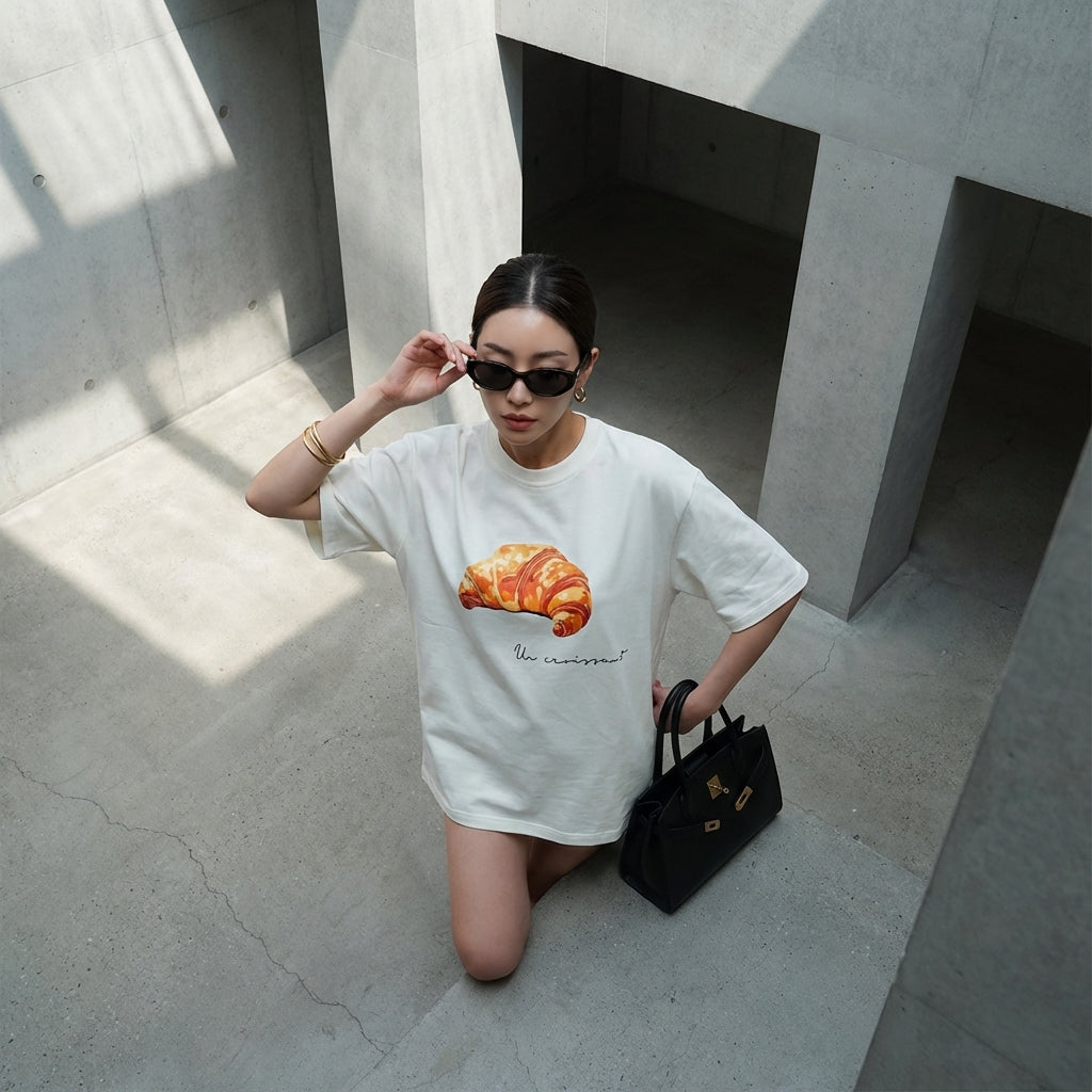 - Estilo: Streetwear, Casual, K-fashion. Esta camiseta encarna el espíritu libre y moderno de la moda urbana coreana, con un corte holgado y un estampado distintivo.