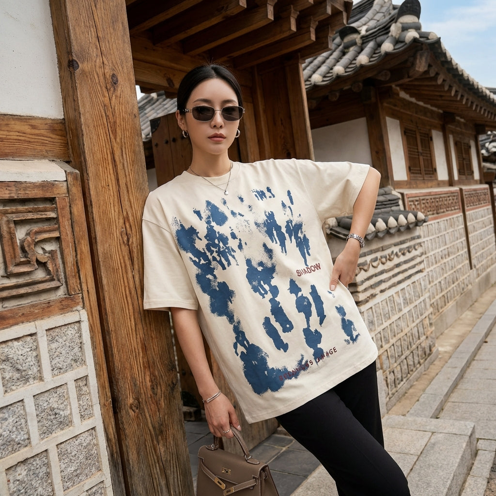 - Estilo: Streetwear, K-fashion, Tendencia, Urbano. Esta camiseta encarna el espíritu de la moda coreana contemporánea con un toque artístico.