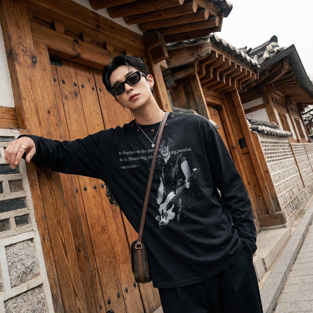 Esta camiseta es una prenda esencial para aquellos que buscan tanto comodidad como un estilo definido, inspirado en las últimas tendencias de la moda K-fashion.