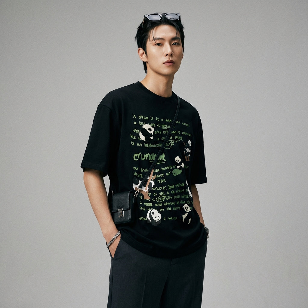 • Estilo: Streetwear, Casual, K-fashion. Esta camiseta encarna el espíritu joven y urbano de la moda coreana, perfecta para un look relajado.