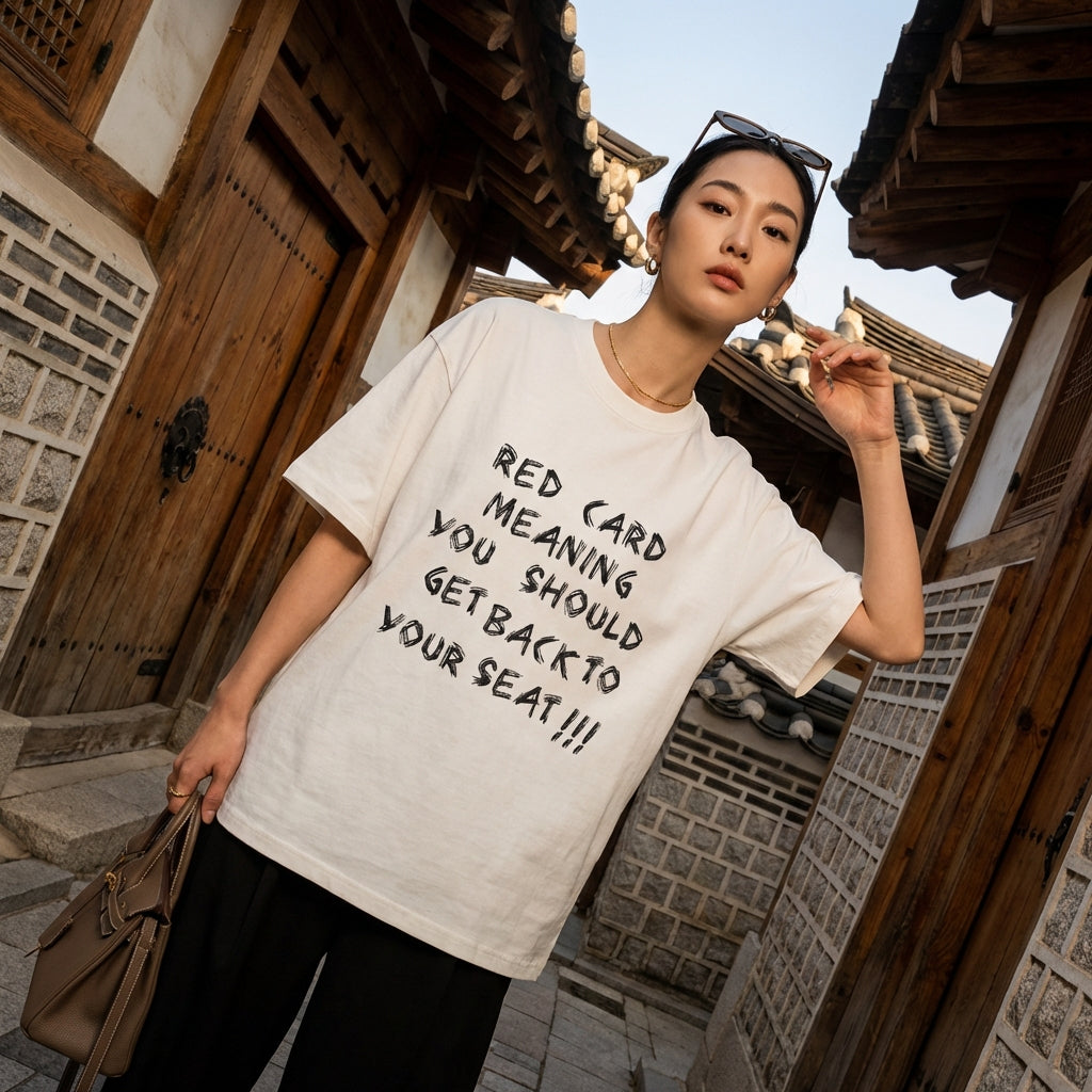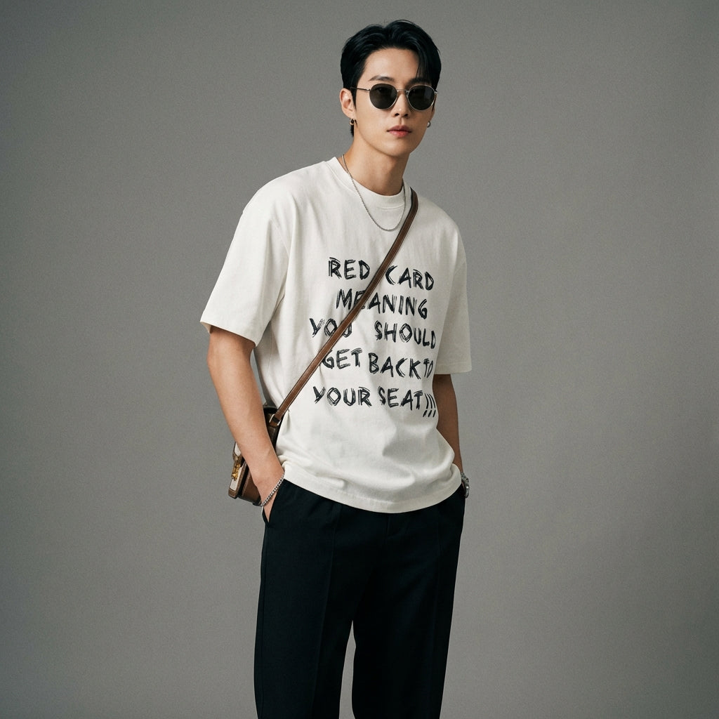 - Estilo: Streetwear, K-fashion, Casual. Esta camiseta encarna la estética urbana y moderna, inspirada en la moda coreana, ideal para un look moderno y sin esfuerzo.