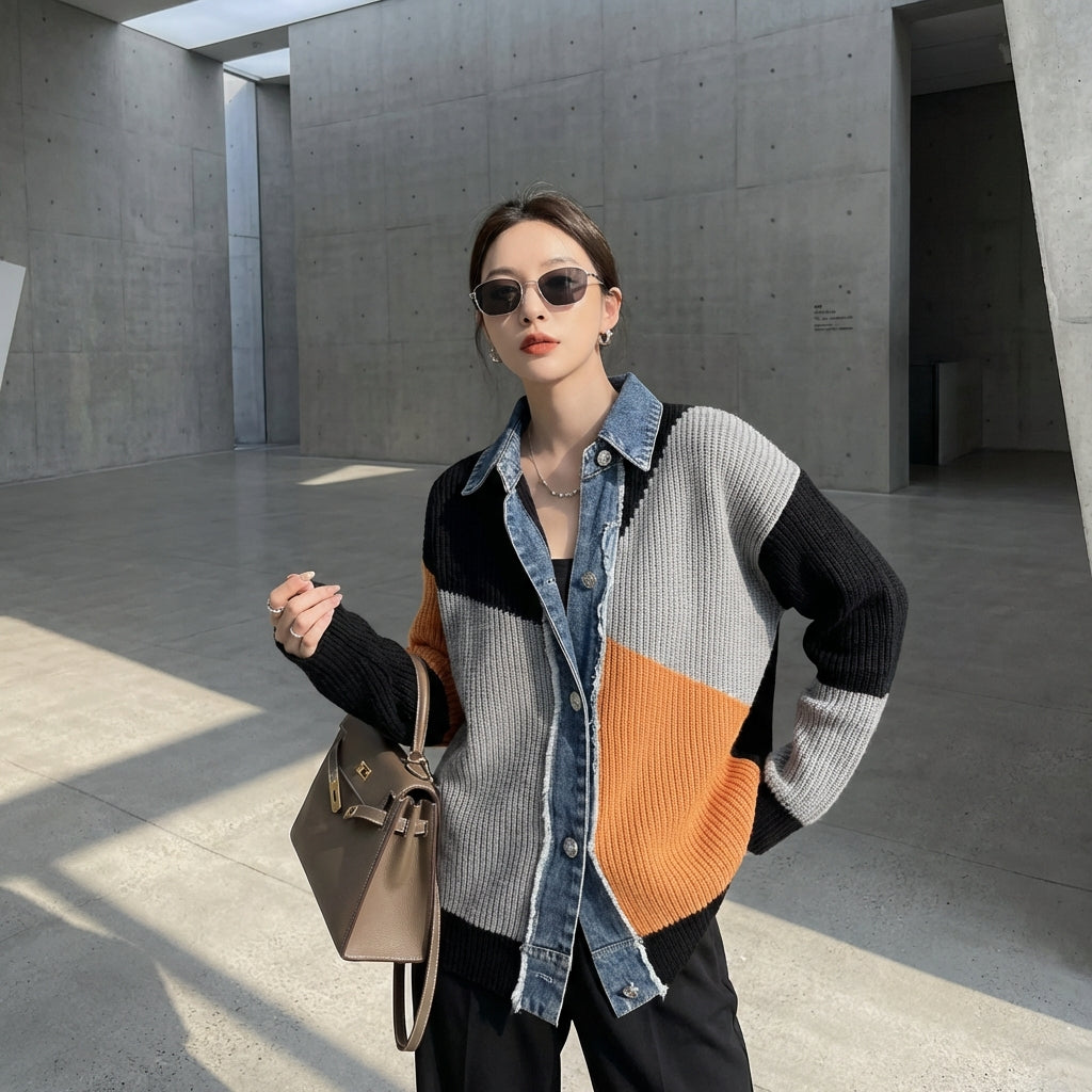 Adopta un look atrevido y a la moda con nuestro cárdigan asimétrico bicolor. Su cuello solapa y su diseño único lo convierten en una prenda fuerte para dinamizar tu armario. ¡Perfecto para quienes les gusta destacar con estilo! ✨