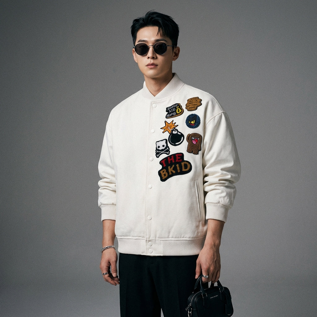 - Estilo: Streetwear, Retro Americano, K-fashion. Esta chaqueta encarna el espíritu casual y moderno, ideal para un look urbano y con estilo.