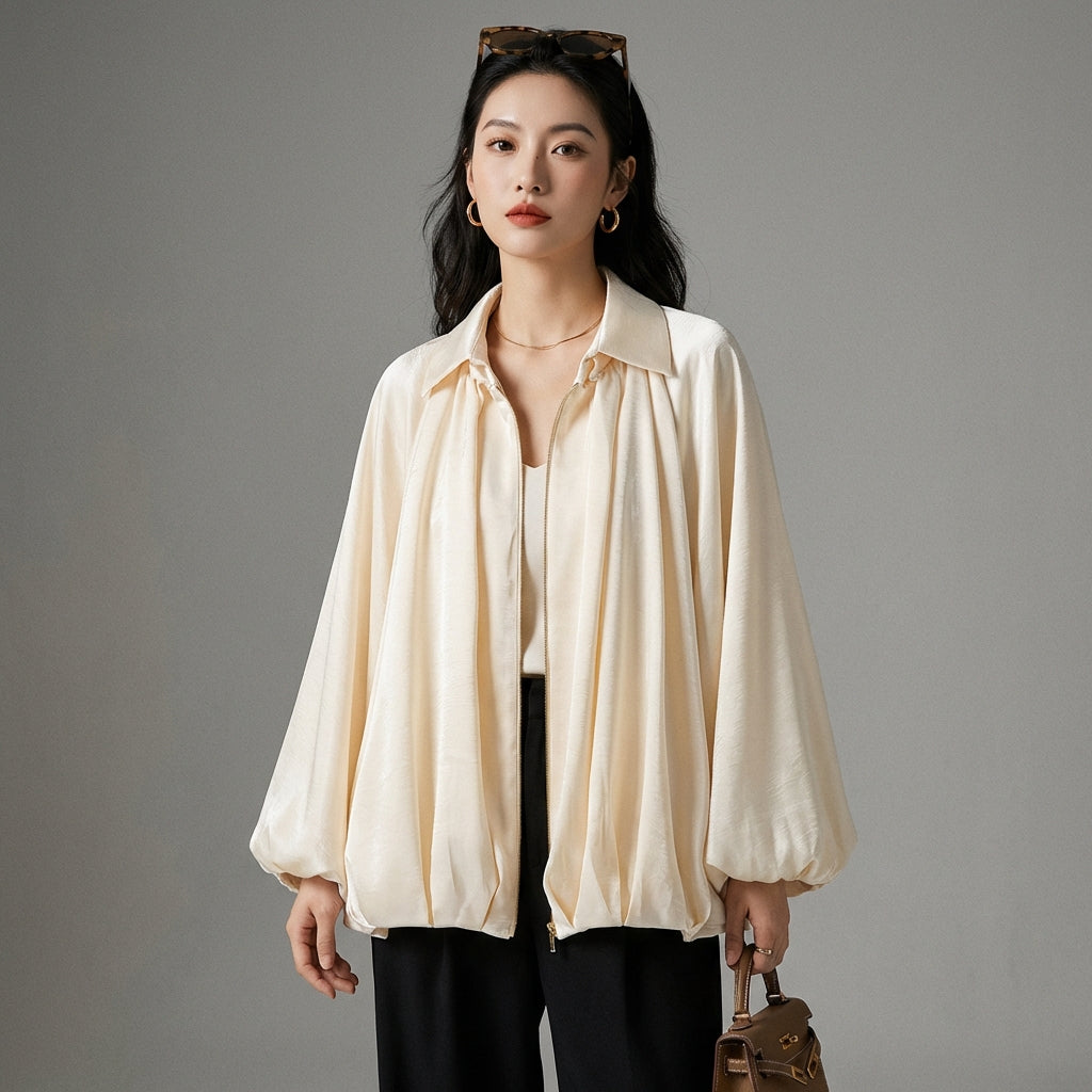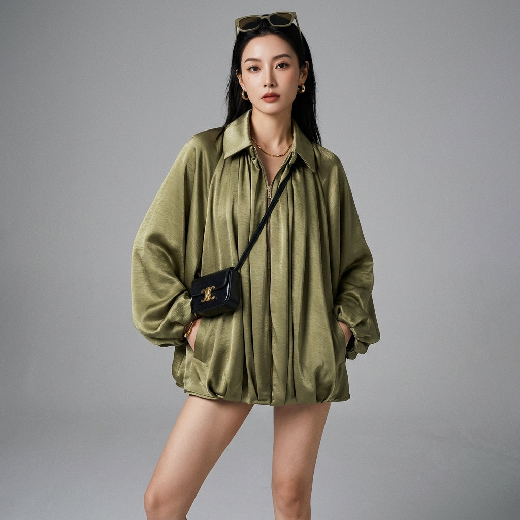 Adopta un estilo chic y casual con nuestra chaqueta bomber de satén, perfecta para cualquier ocasión. ¡Su diseño versátil y corte clásico la convierten en un imprescindible de tu armario para un look moderno y refinado! ✨