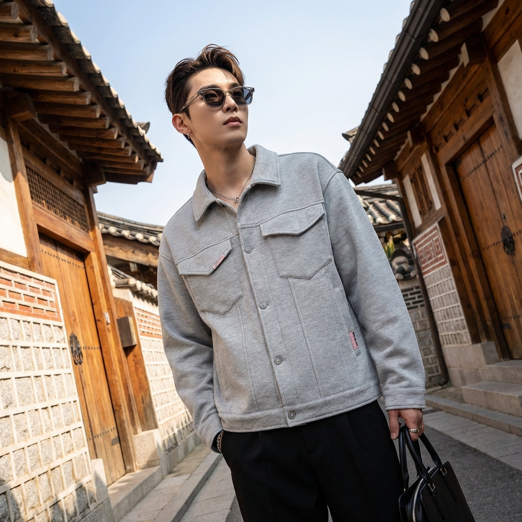 - Estilo: Minimalista, Streetwear, K-fashion. Esta chaqueta encarna la elegancia discreta y la modernidad inspiradas en la moda coreana.