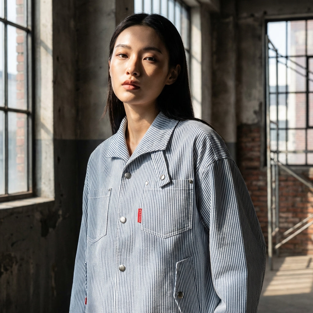 Con su diseño elegante y sus rayas clásicas, esta chaqueta es un imprescindible para quienes buscan una prenda a la vez moderna y atemporal, inspirada en las últimas tendencias coreanas.