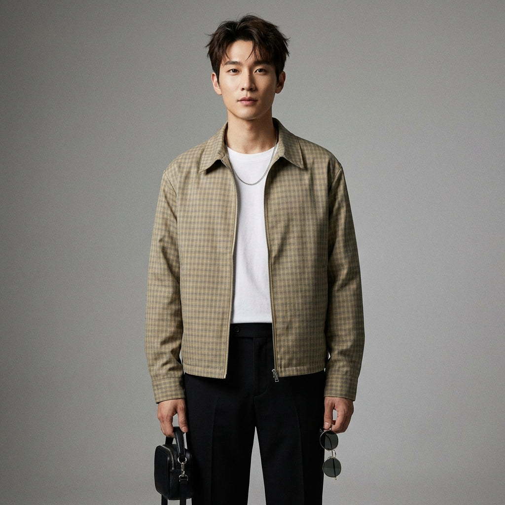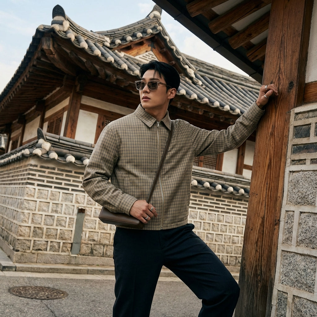 • Estilo: Streetwear, Retro, K-fashion, Tendencia. Esta chaqueta combina el encanto retro de los cuadros con el dinamismo del streetwear coreano.