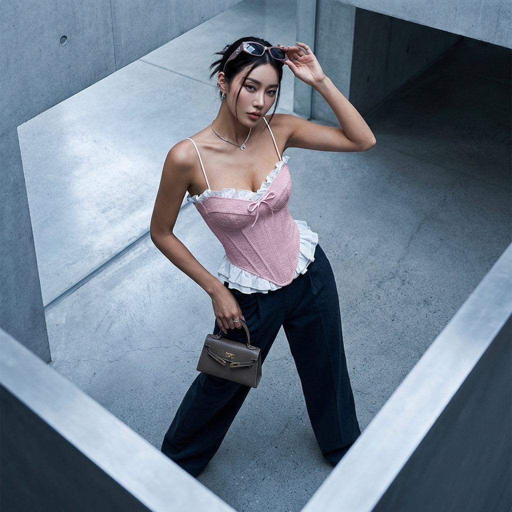 - Tipo: Crop Top, Corsé. Su corte corto y su efecto corsé aportan un toque de feminidad y estructura a tu atuendo.