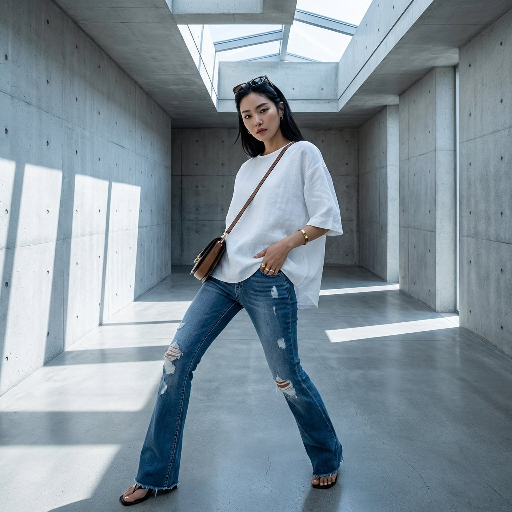 - Estilo: Streetwear, K-fashion, Tendencia. Estos jeans encarnan el espíritu casual y moderno de la moda coreana, ideales para un look urbano y actual.