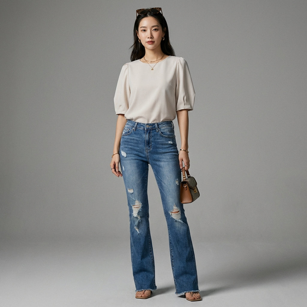 Estos jeans bootcut son la prenda ideal para un look casual y moderno, fáciles de combinar con un crop top o un jersey oversize para un estilo K-fashion definido.
