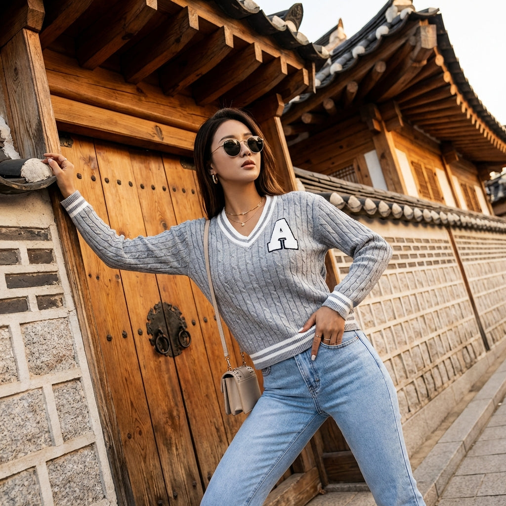 - Estilo: K-fashion, Elegante, Casual. Perfecto para un estilo urbano o un atuendo más sofisticado, este jersey encarna la elegancia moderna de la moda coreana.