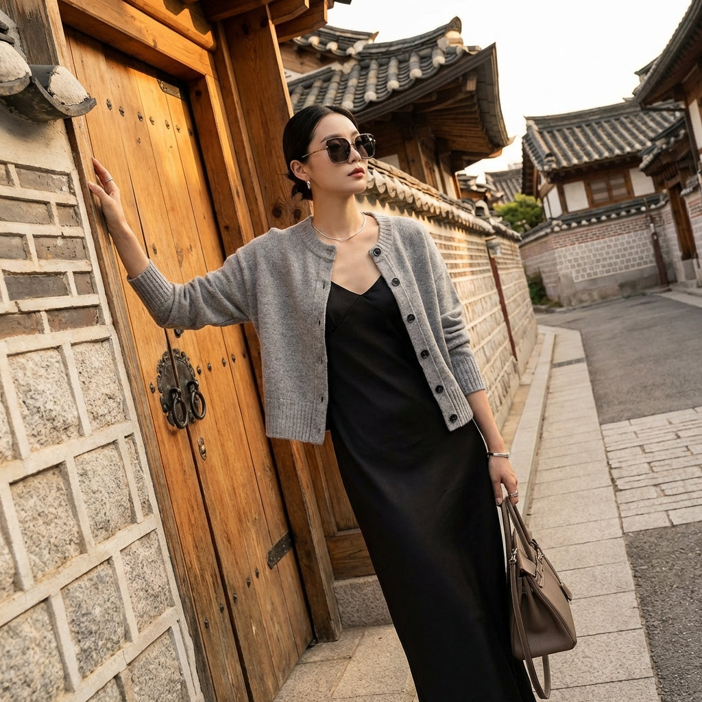 - Estilo: Minimalista, K-fashion, Streetwear. Este suéter encarna la elegancia discreta y moderna de la moda coreana, perfecto para un estilo casual y de tendencia.