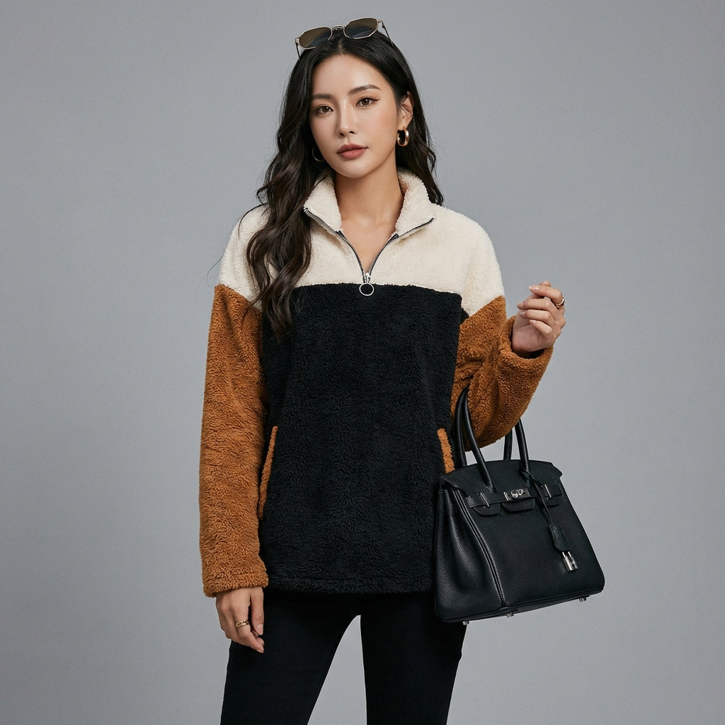Adopta un look casual y a la moda con nuestra sudadera con capucha de felpa bicolor. Esta acogedora prenda combina comodidad y estilo con sus bloques de color contrastantes y su práctico bolsillo de parche. ¡Perfecta para mantenerte abrigado con un toque de moda! 🌟