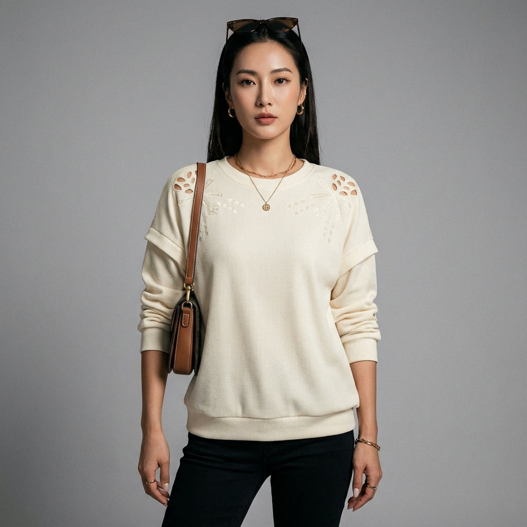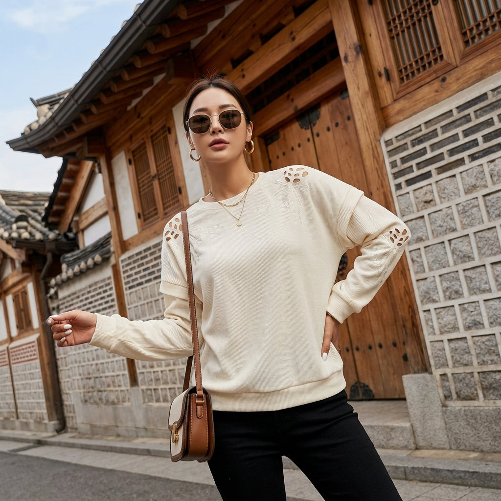 Adopta un look casual y con estilo con nuestra sudadera de cuello redondo y manga larga. Su diseño único con sutiles recortes añade un toque de originalidad a este clásico atemporal. ¡Perfecta para tus días casuales o tus salidas con amigos! ✨