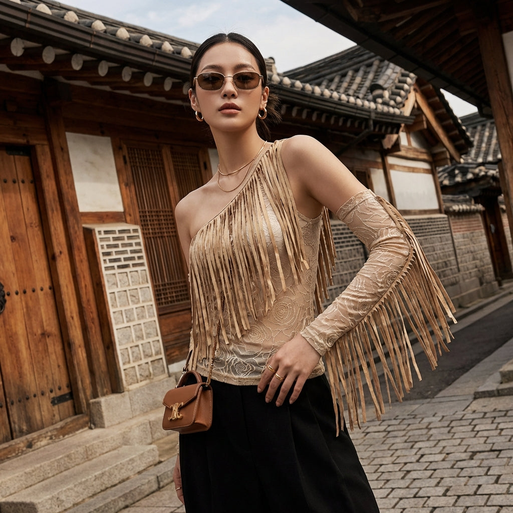 - Estilo: Minimalista, Tendencia, K-fashion. Este top encarna la elegancia discreta y las líneas limpias de la moda coreana contemporánea, perfecto para un look chic y moderno.