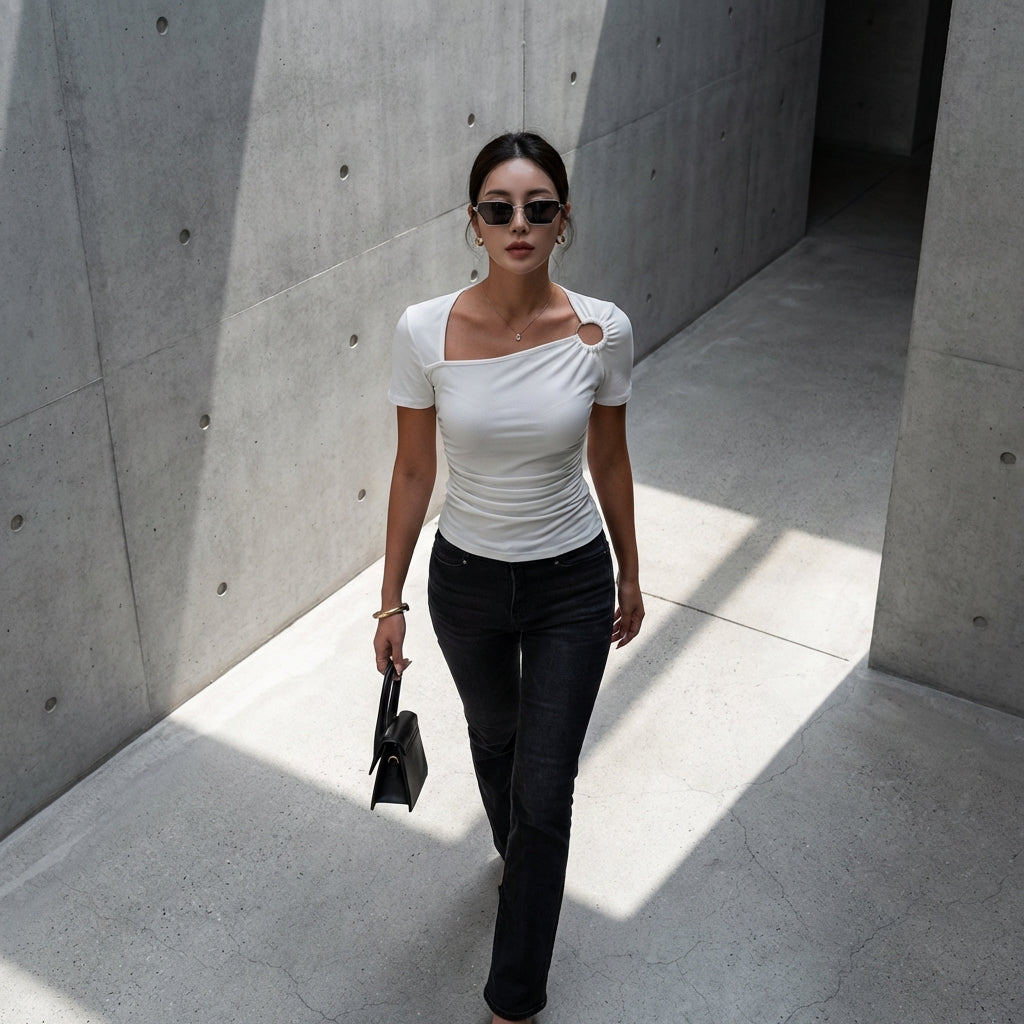 - Estilo: K-fashion, Elegante, Sexy. Inspirado en las últimas tendencias de la moda coreana, este top es ideal para un look sofisticado y atrevido.