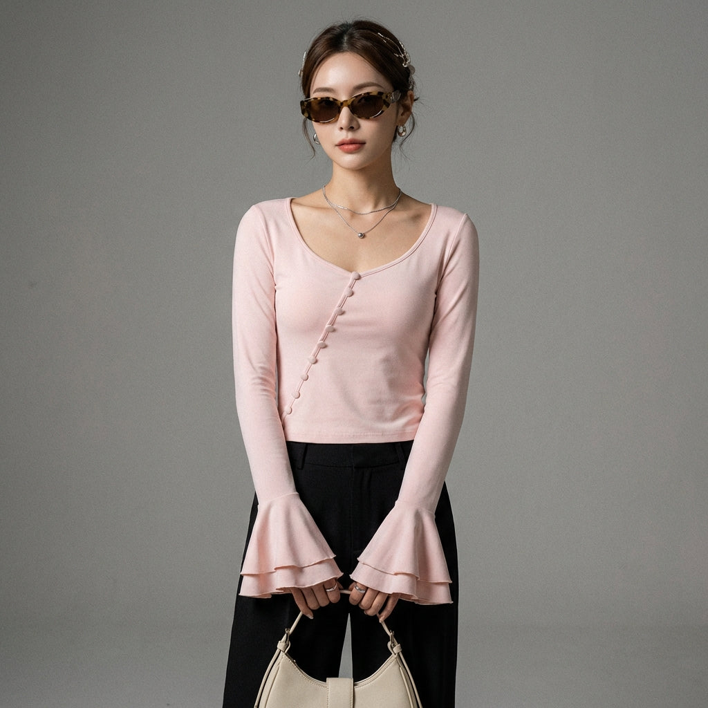 - Estilo: Minimalista, Tendencia, K-fashion. Este top refleja la elegancia discreta y las líneas depuradas de la moda coreana, perfecto para un look informal o más sofisticado.