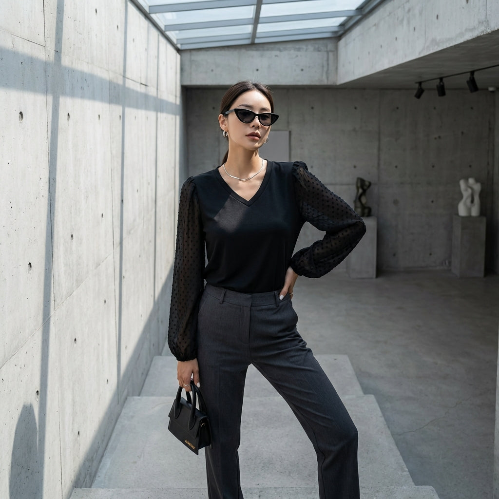 - Estilo: Minimalista, Tendencia, K-fashion. Este top encarna la elegancia discreta y la versatilidad de la moda actual, con un toque de inspiración coreana.