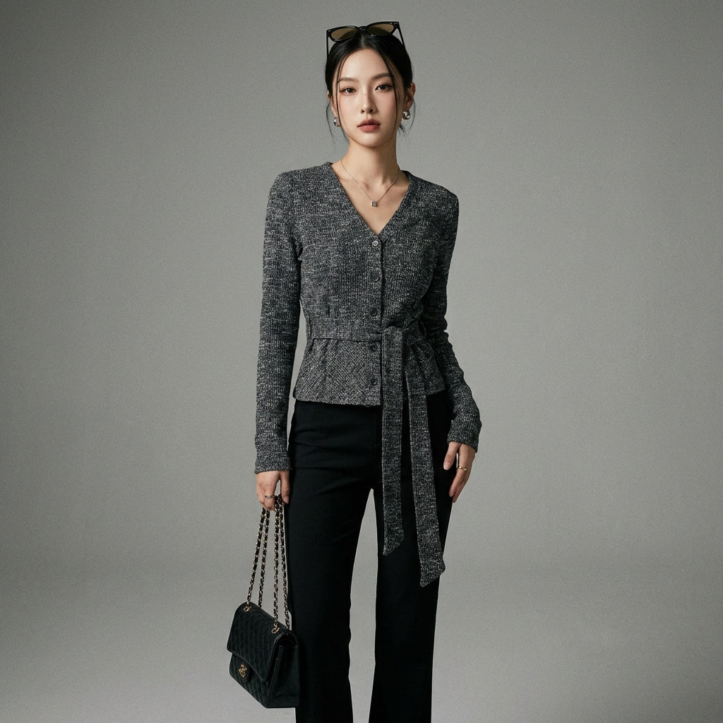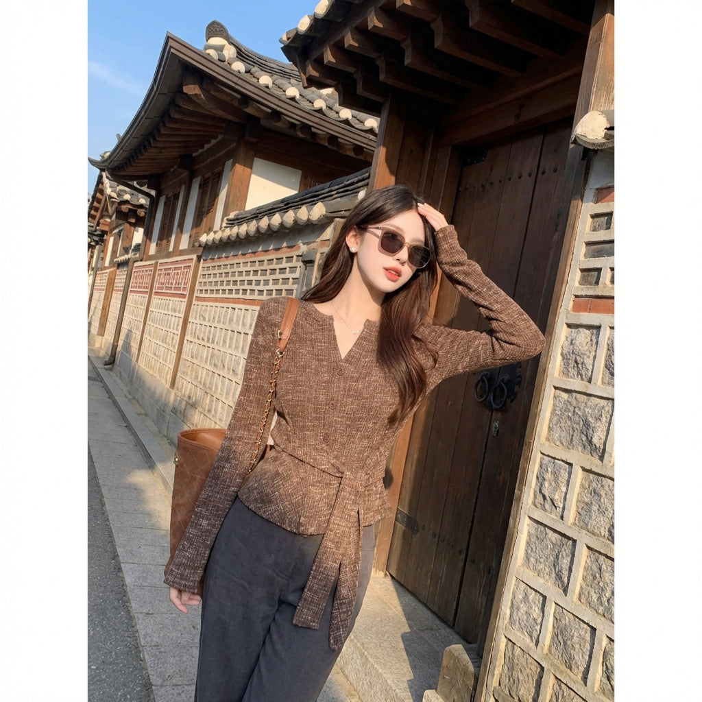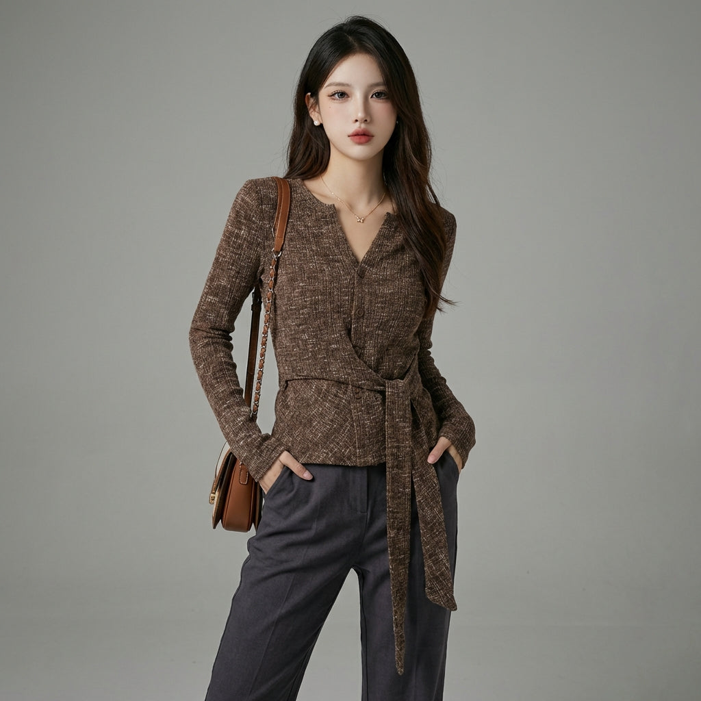 Adopta un look chic y refinado con nuestro top de manga larga y cuello en V, con un cinturón para anudar que te dará una silueta ajustada y elegante. ¡Perfecto para cualquier ocasión, combina comodidad y estilo sofisticado! ✨