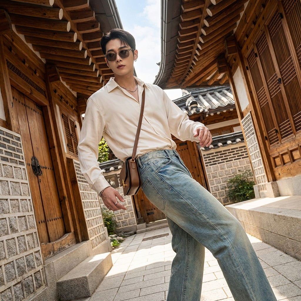 - Estilo: Streetwear, Casual, K-fashion. Estos vaqueros encarnan la estética urbana y casual, muy popular en la moda coreana actual.