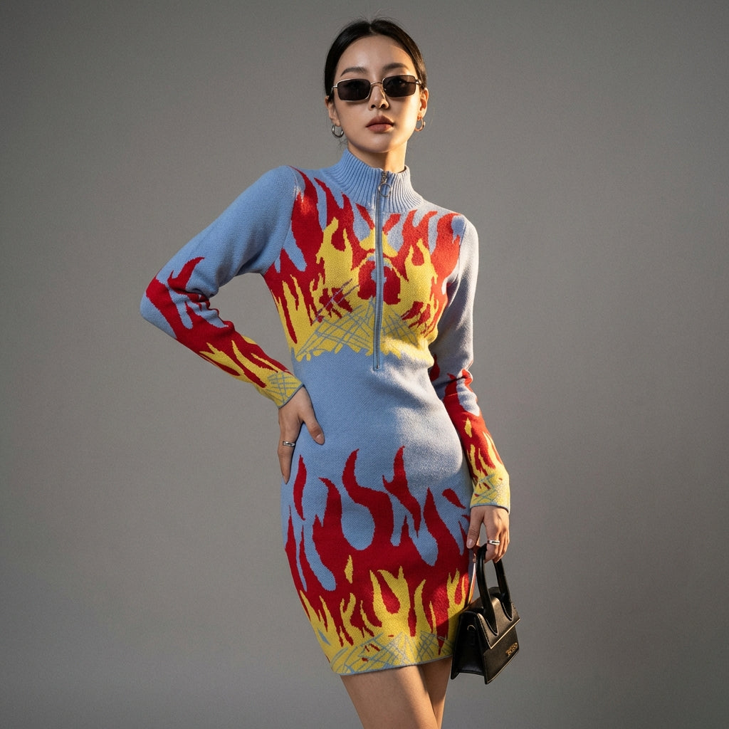 Adopta un look moderno y cómodo con nuestro vestido de punto de cuello con cremallera y manga larga. Su diseño elegante y corte ajustado realzan tu figura, ¡perfecto para cualquier ocasión informal o elegante! ✨