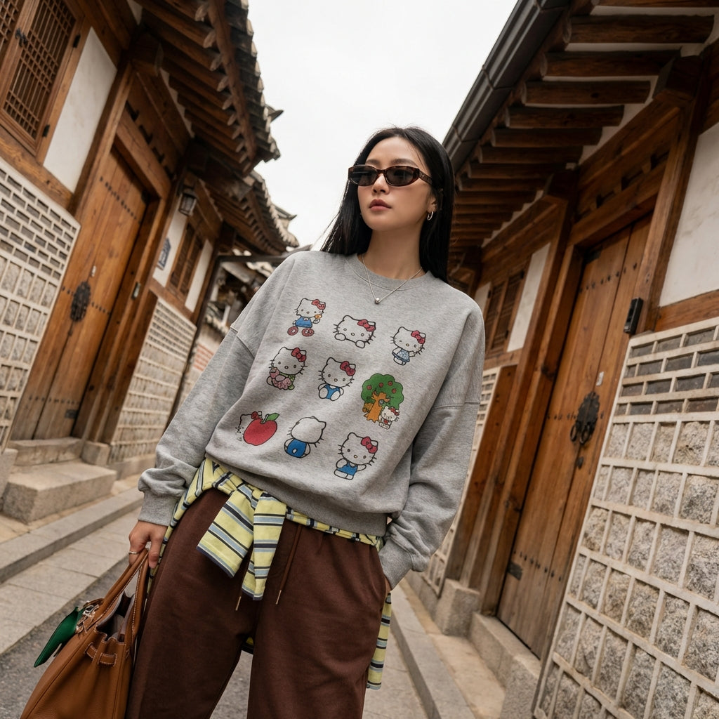 - Estilo: Streetwear, Casual, K-fashion. Esta sudadera encarna el estilo urbano coreano, perfecto para un look moderno y relajado.