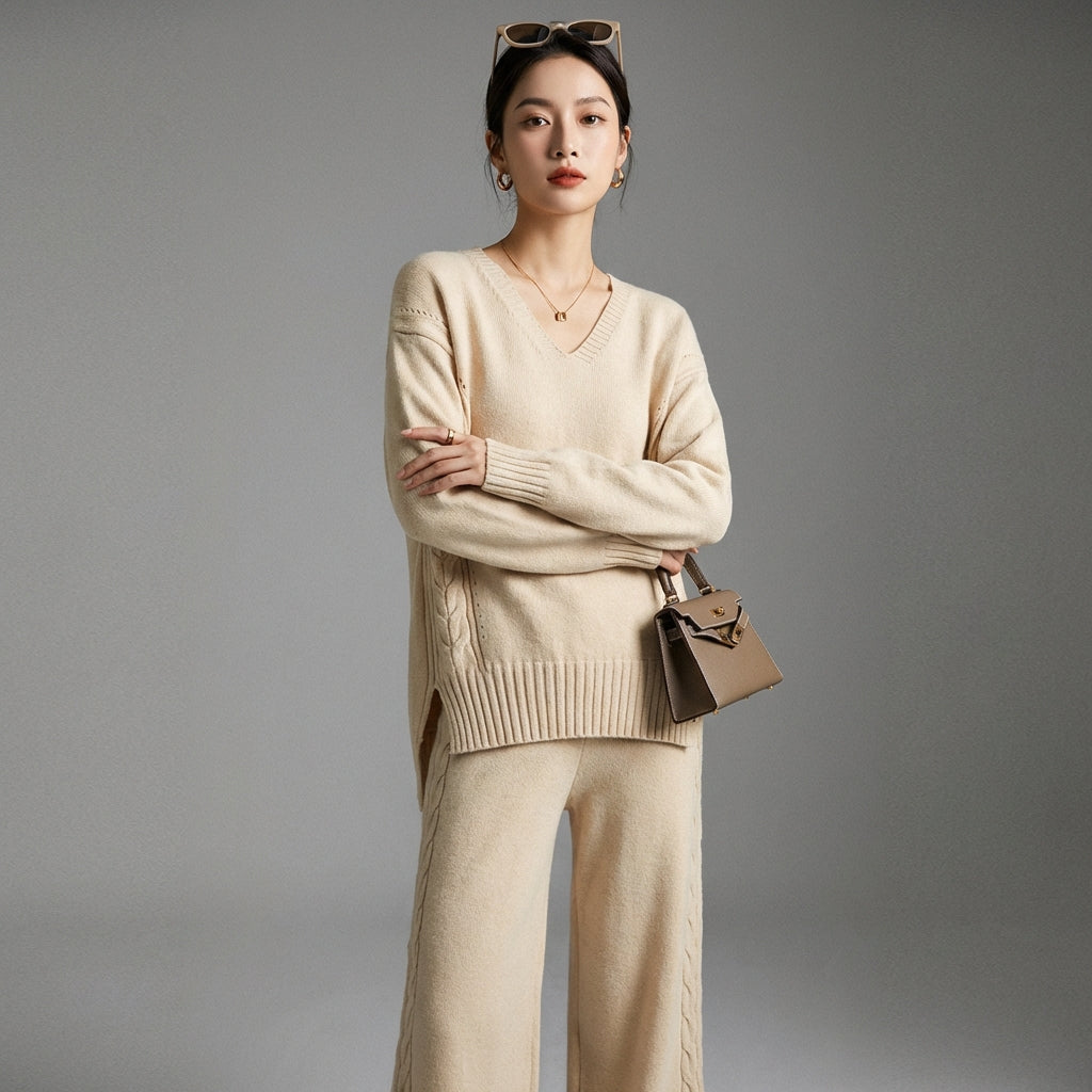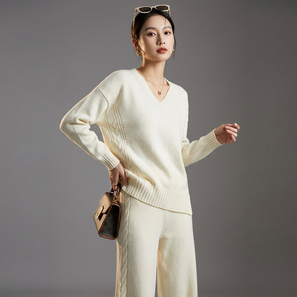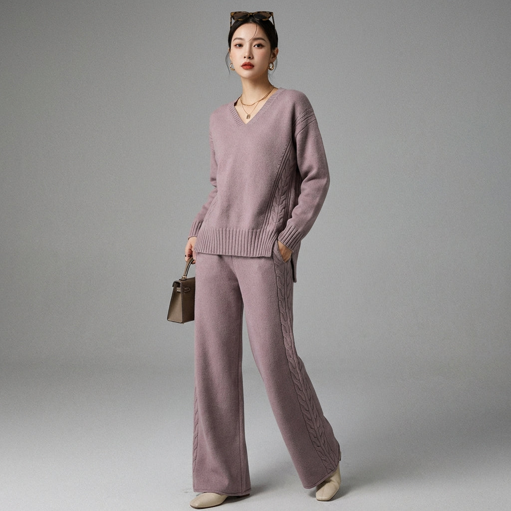 Adopta un look moderno y cómodo con nuestro conjunto de jersey y pantalón ancho de punto. Este elegante dúo, perfecto para cualquier ocasión, combina suavidad y estilo casual para una silueta moderna y chic. ✨
