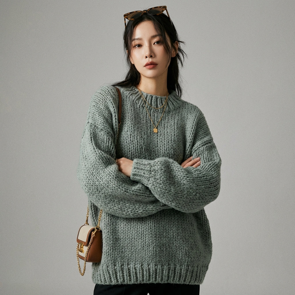 • Estilo: Minimalista, Casual, K-fashion. Este suéter encarna la elegancia simple y moderna, inspirada en las últimas tendencias coreanas.