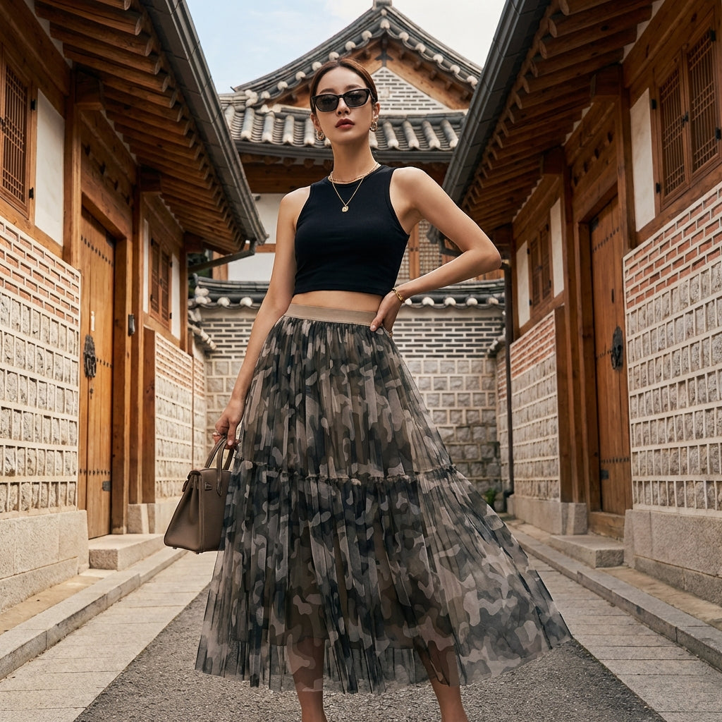 - Estilo: Moda coreana, Romántico, Tendencia. Esta falda encarna la elegancia y la dulzura de la K-fashion, ideal para un look sofisticado y moderno.
