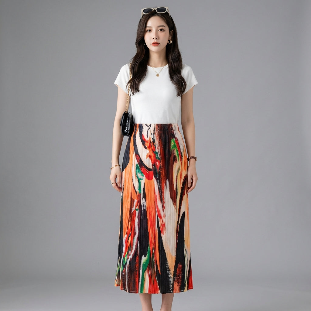 Adopta un look moderno y sofisticado con nuestra falda plisada estampada de talle alto. ¡Su diseño elegante y su corte cómodo la convierten en un imprescindible para un estilo casual o más formal! 🧡