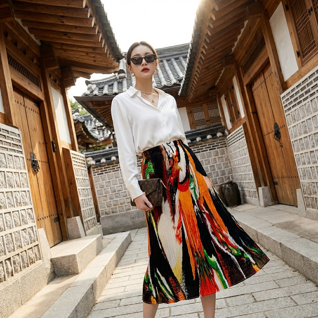 - Estilo: Moda coreana, Urbano, Tendencia. Esta falda encarna la elegancia casual de la K-fashion, perfecta para un look moderno y con estilo.