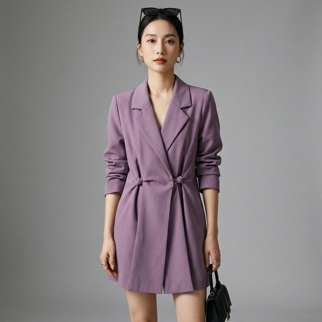 - Estilo: Minimalista, Urbano, K-fashion. Este blazer encarna la elegancia moderna con un toque de desenfado, perfecto para un estilo coreano refinado.