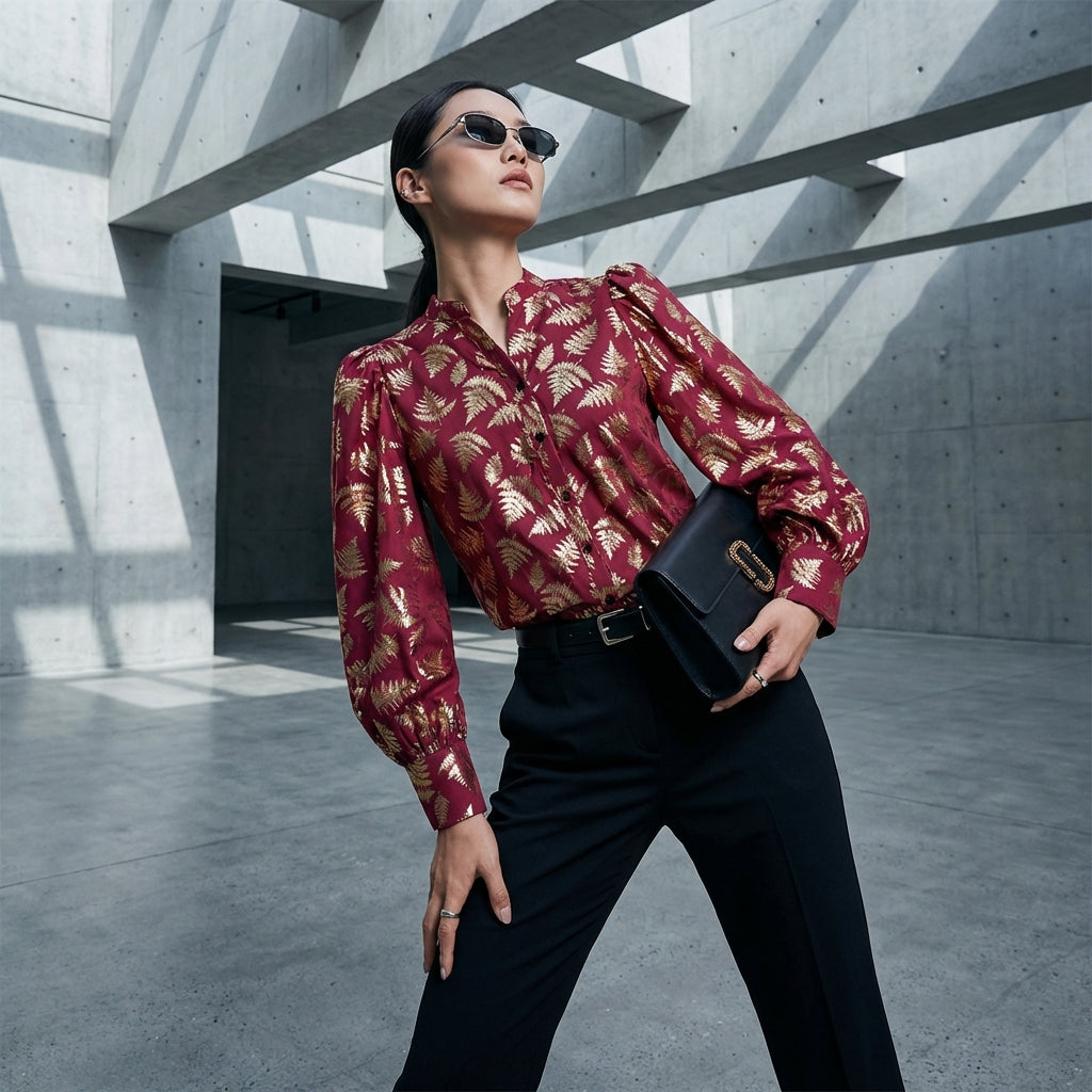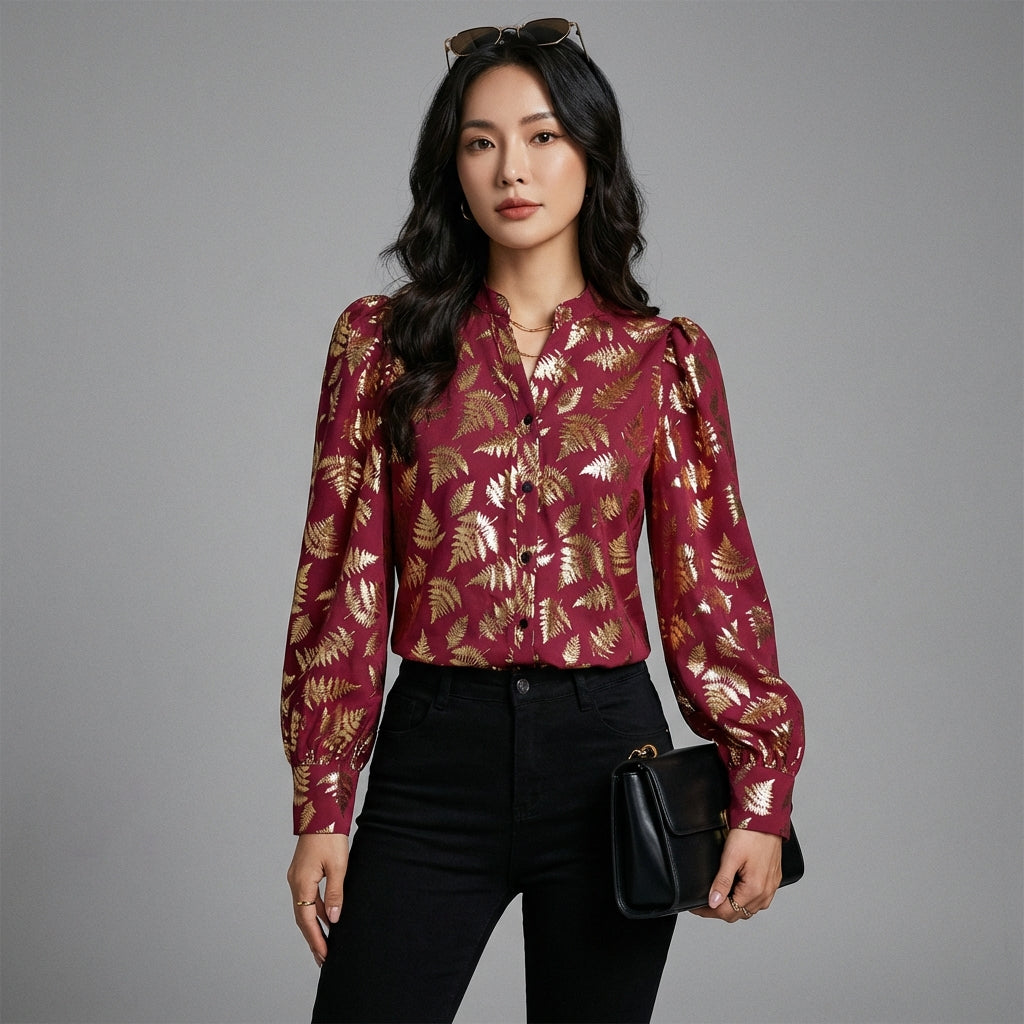 Adopta un look sofisticado con nuestra camisa estampada de manga larga, con cuello de solapa con muescas y cierre de botones. ¡Su diseño único y su corte refinado la convierten en un imprescindible para un estilo moderno y chic! ✨