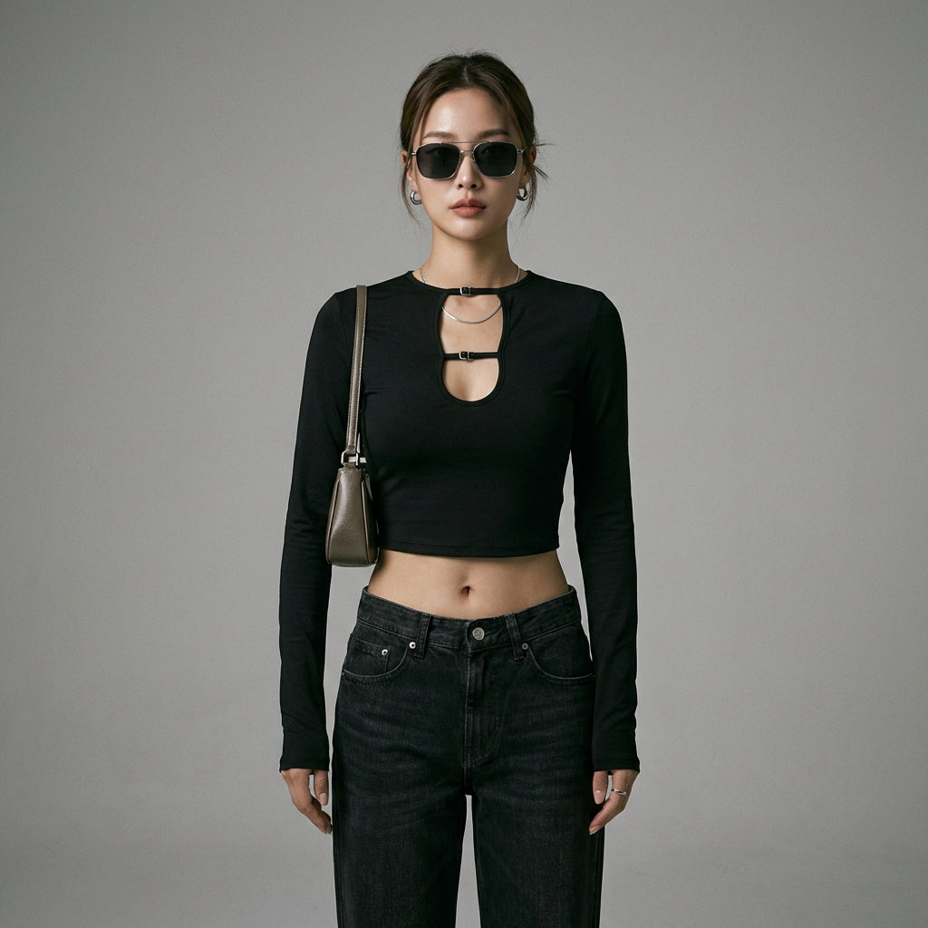 - Tipo: Crop Top, Slim fit. Un corte corto y ajustado que realza la silueta, ideal para superposiciones o para llevar solo.