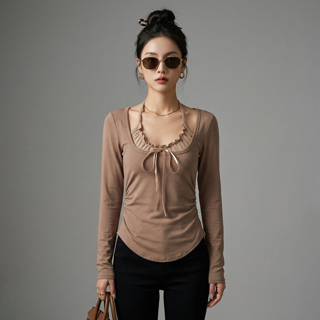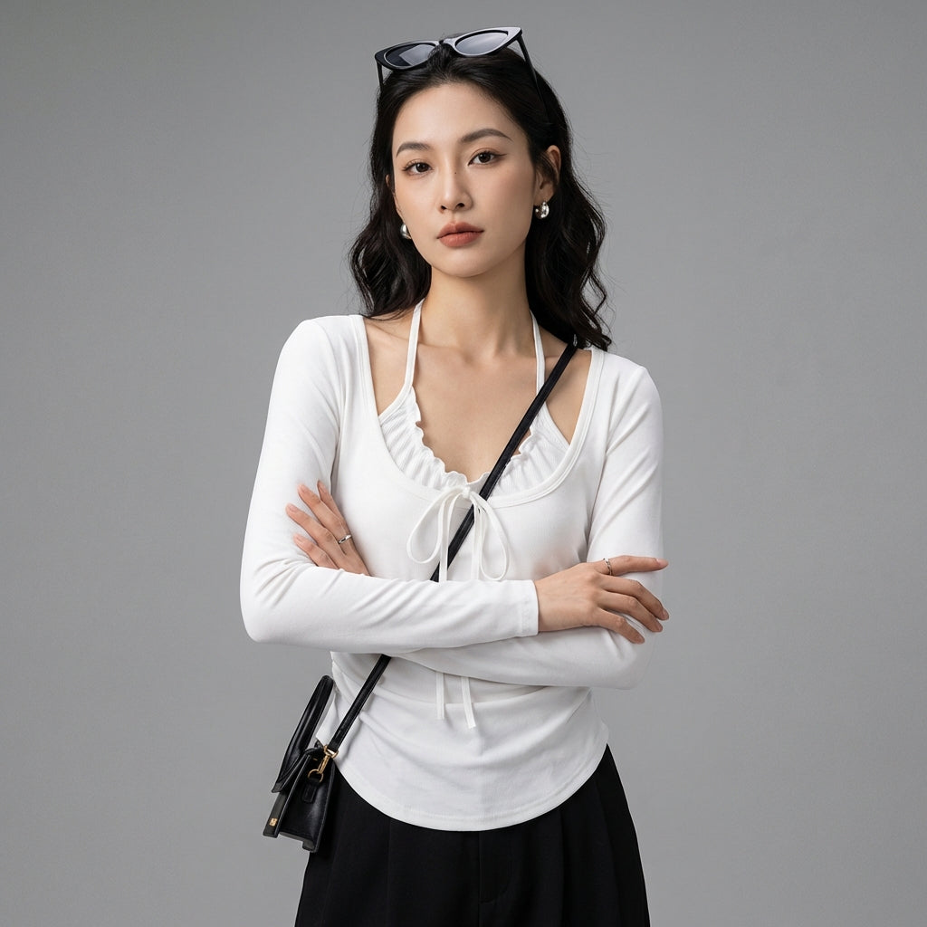 Descubre nuestra camiseta con efecto superpuesto, una prenda de moda que combina comodidad y estilo. Su elegante diseño con cuello en U y mangas largas te asegura un look chic y casual, ¡perfecto para cualquier ocasión! ✨